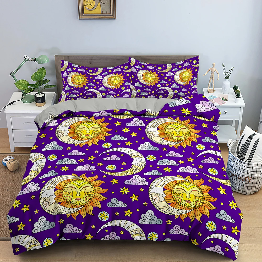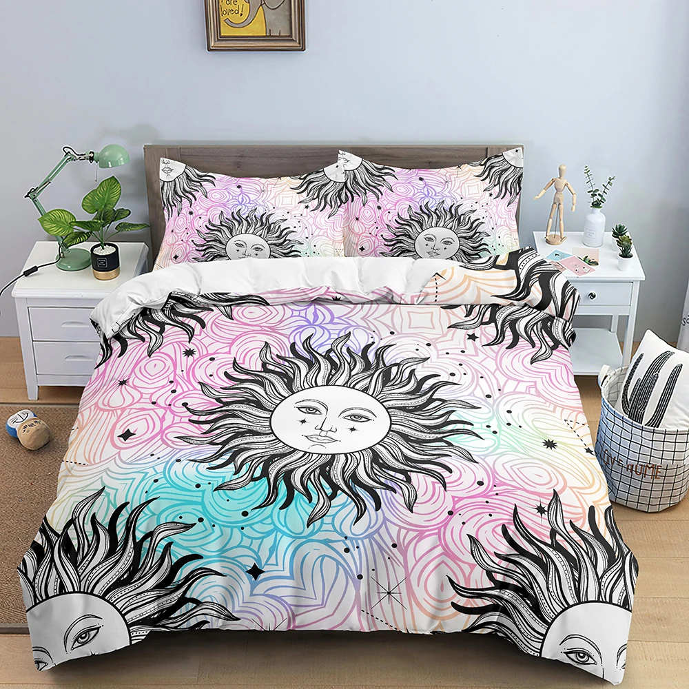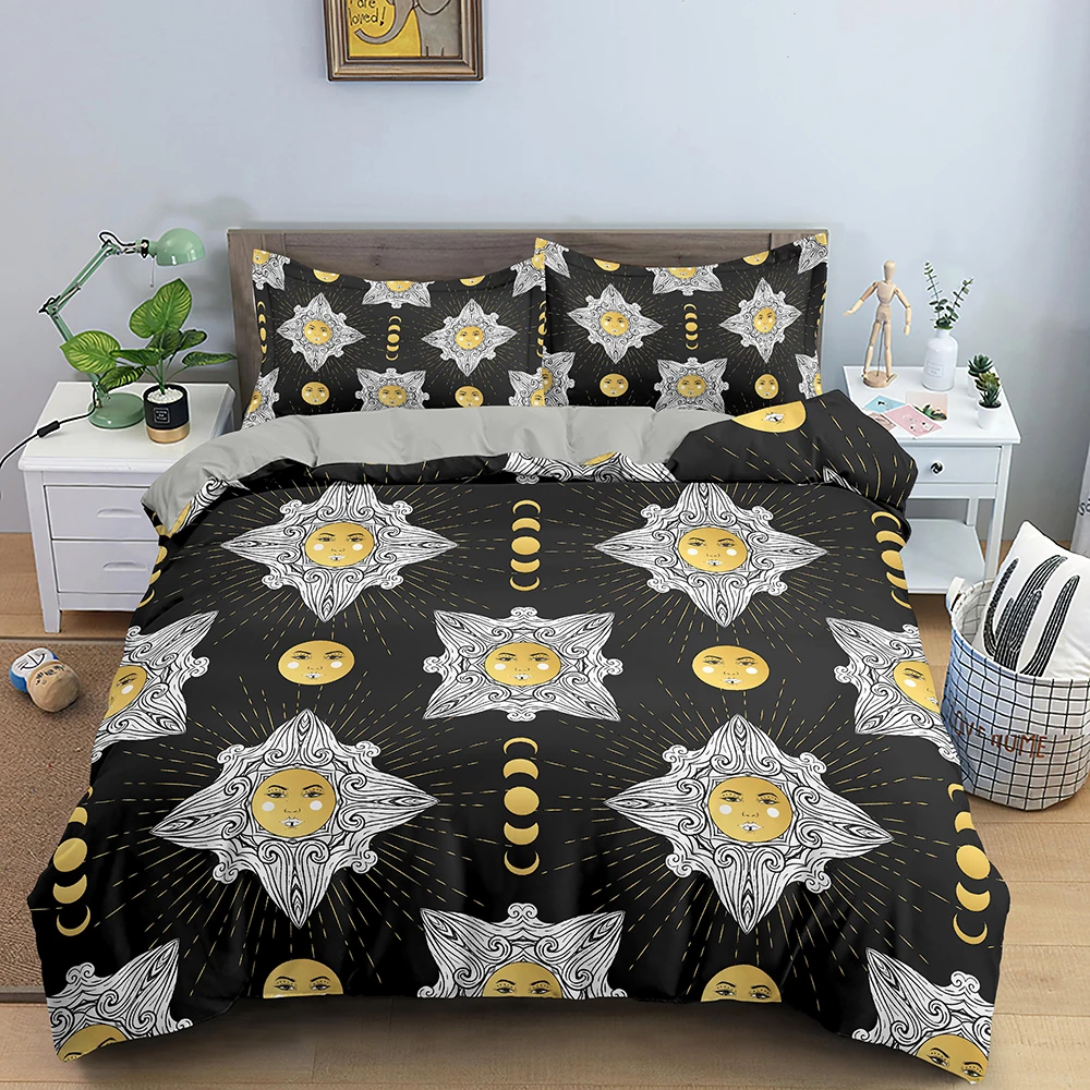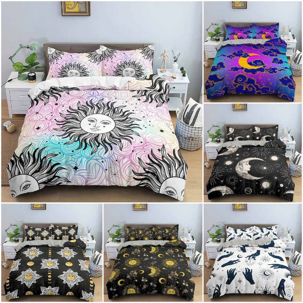 Комплекты постельного белья в богемном стиле, постельное белье с изображением вселенной, Солнца и Луны, пододеяльник, наволочка, 23 шт., односпальный, двуспальный, большого размера