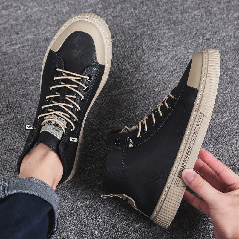 Кроссовки мужские высокие, кожаная спортивная обувь, весна 2021