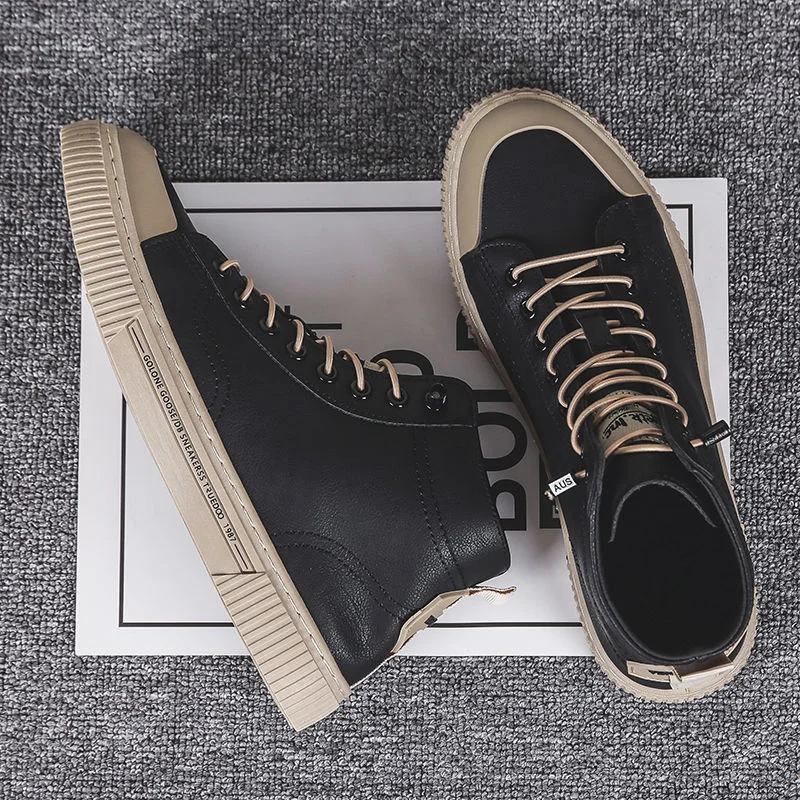 [Возвратная упаковка; Стоимость доставки]; Новинка 2021 года; Сезон весна; Мужская обувь в Корейском стиле; Модная кожаная обувь для отдыха с высоким берцем; Парусиновая обувь; Универсальная модная обувь; Спортивная обувь