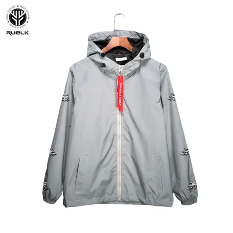 Осенняя мужская модная Светоотражающая куртка RUELK, трендовая уличная треугольная куртка с капюшоном в стиле хип-хоп, флуоресцентная мужская куртка