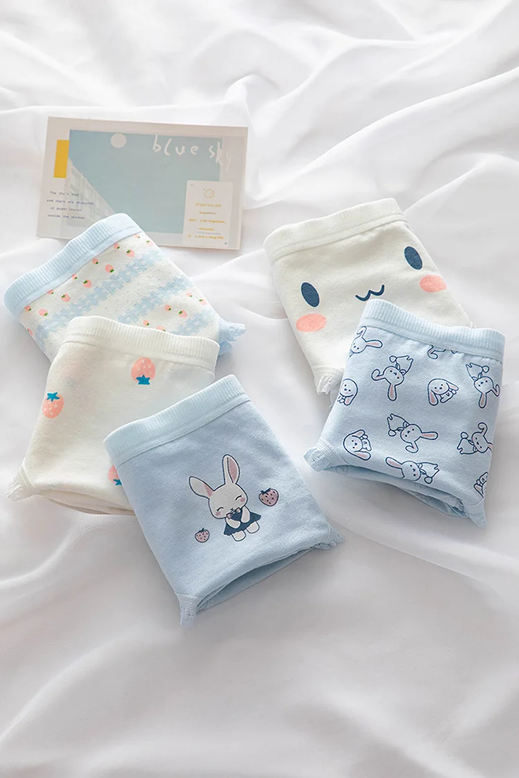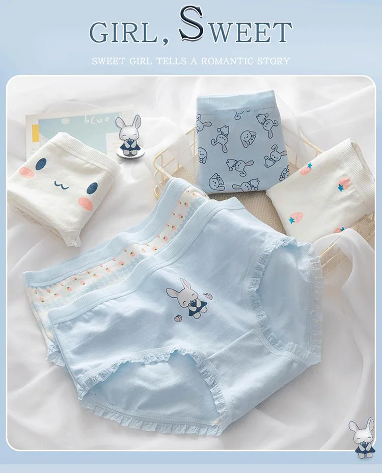 Трусы женские синие с забавным принтом кролика клубники, M L XL