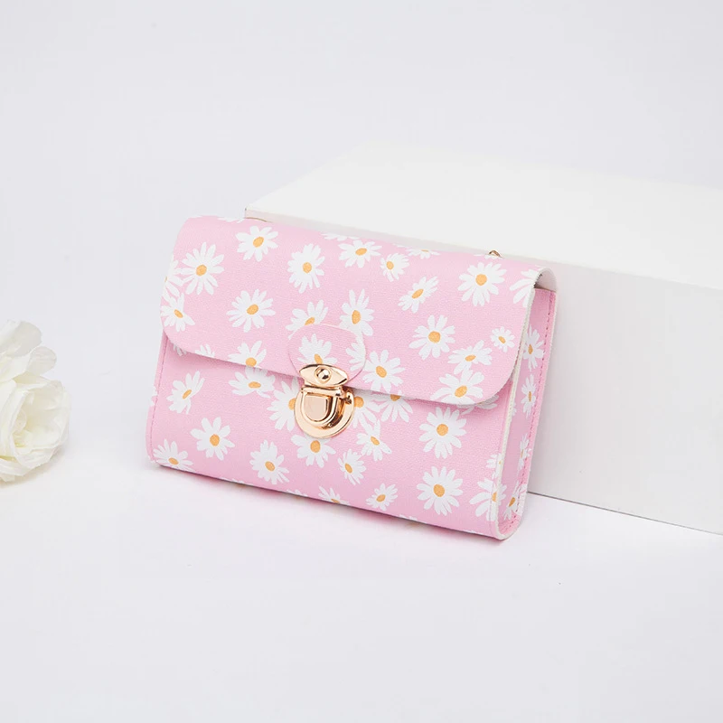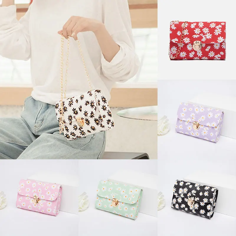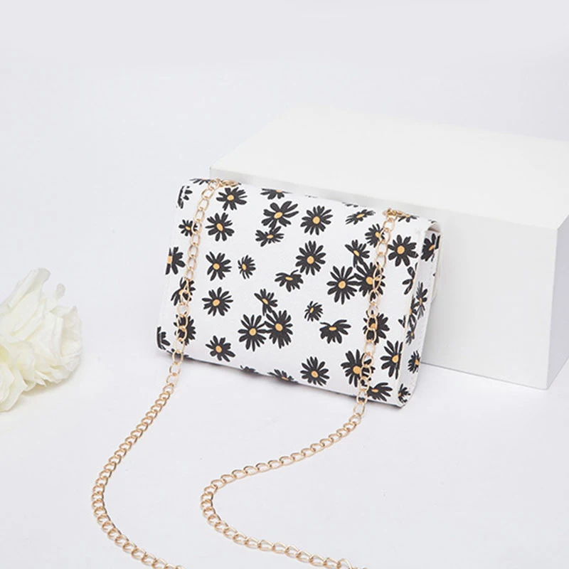 Бесплатная мини-сумка на цепочке для женщин, сумочка на плечо, маленькая квадратная сумка с принтом ромашки, модный мессенджер через плечо, слинг