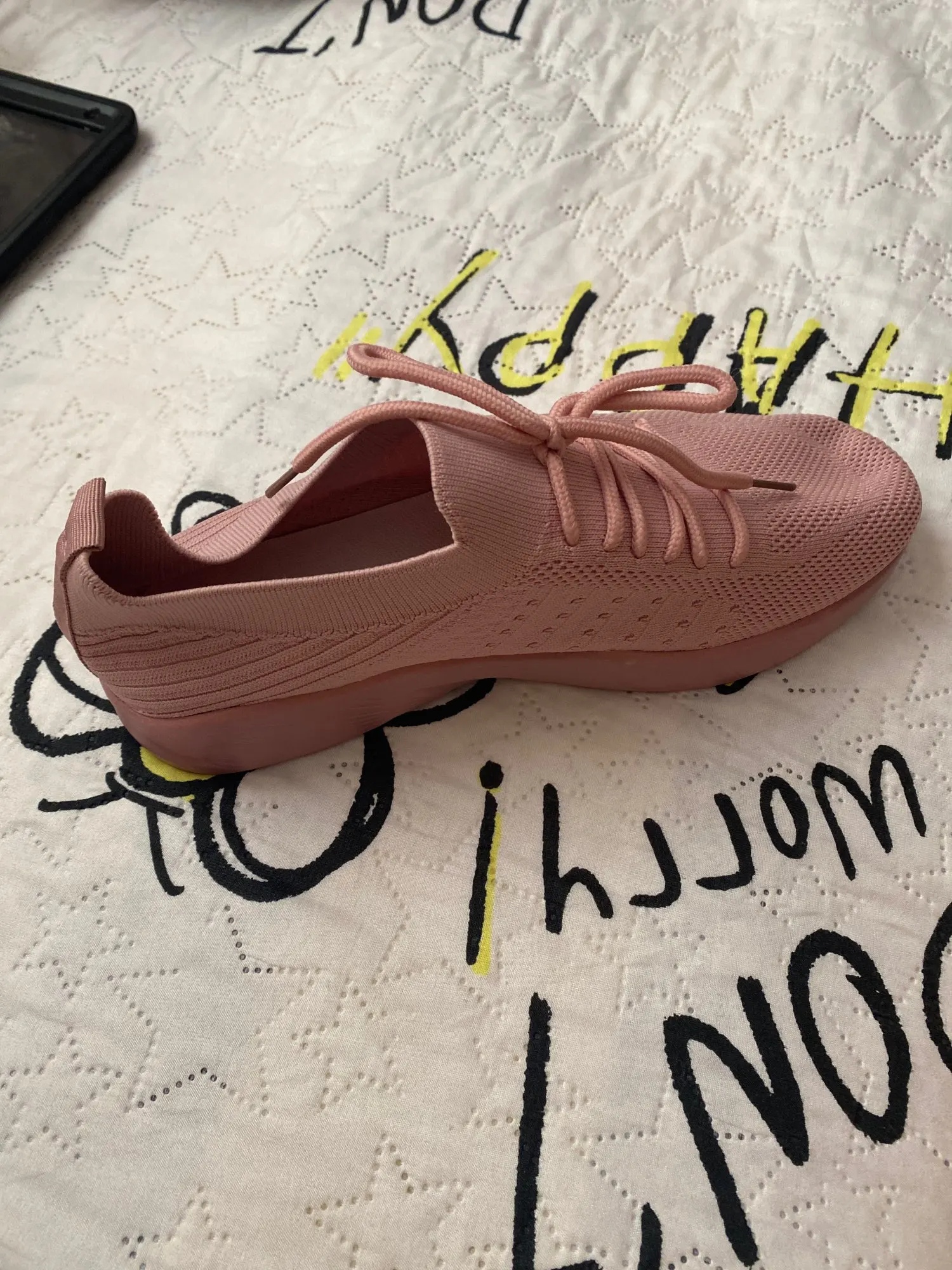 Эта обувь была немного из ткани с отверстиями, вырезанными для шнурков, приклеенных к жесткой пене, а также потребовалась два месяца вместо одного месяца. Но они хорошо скользят по обуви, когда вы хотите просто приклеить некоторые туфли для некоторых быстрых дел.