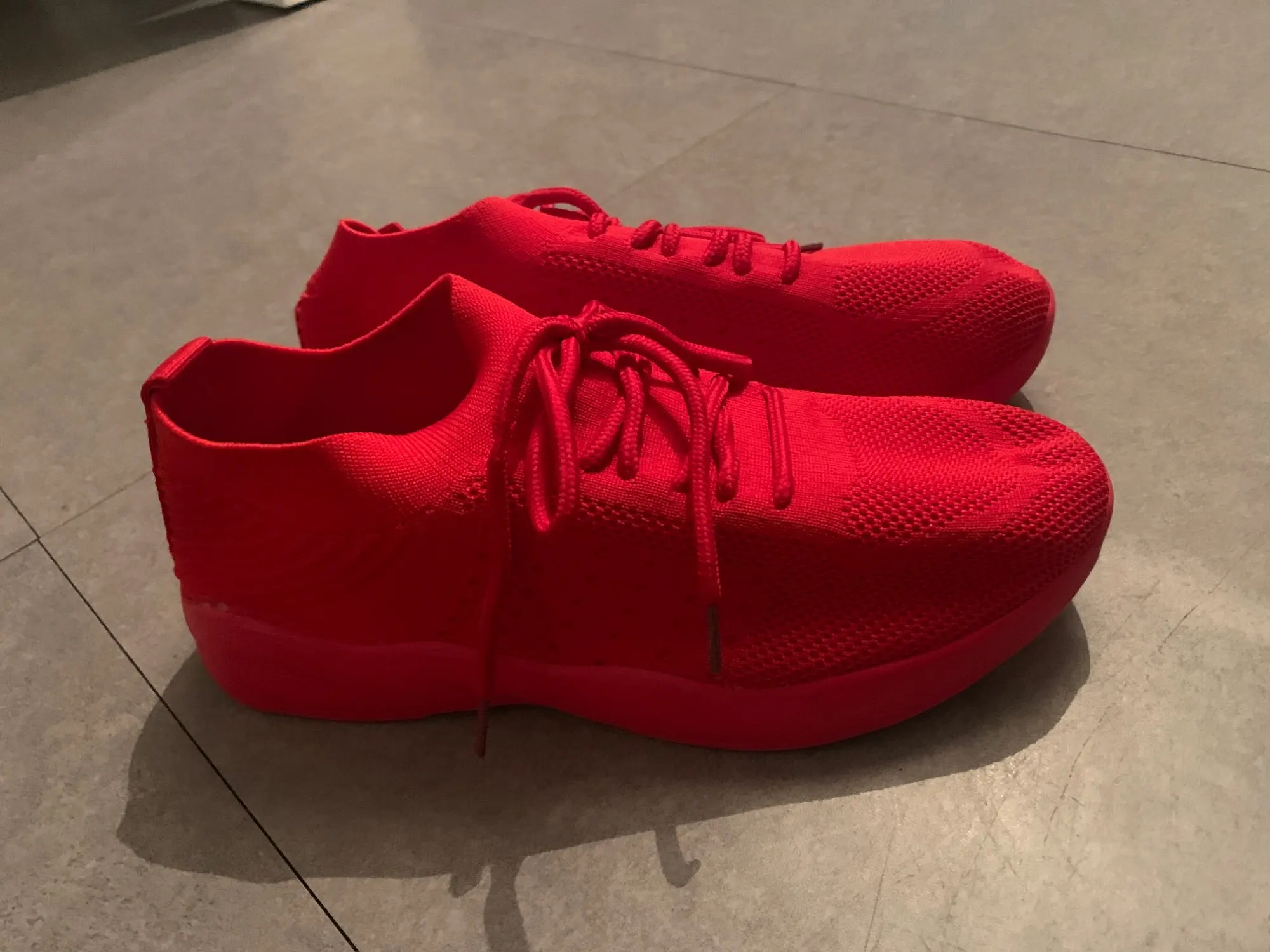 Менее Красный, чем на фото, больше похоже на оранжевый. Большая подошва, которая жесткая