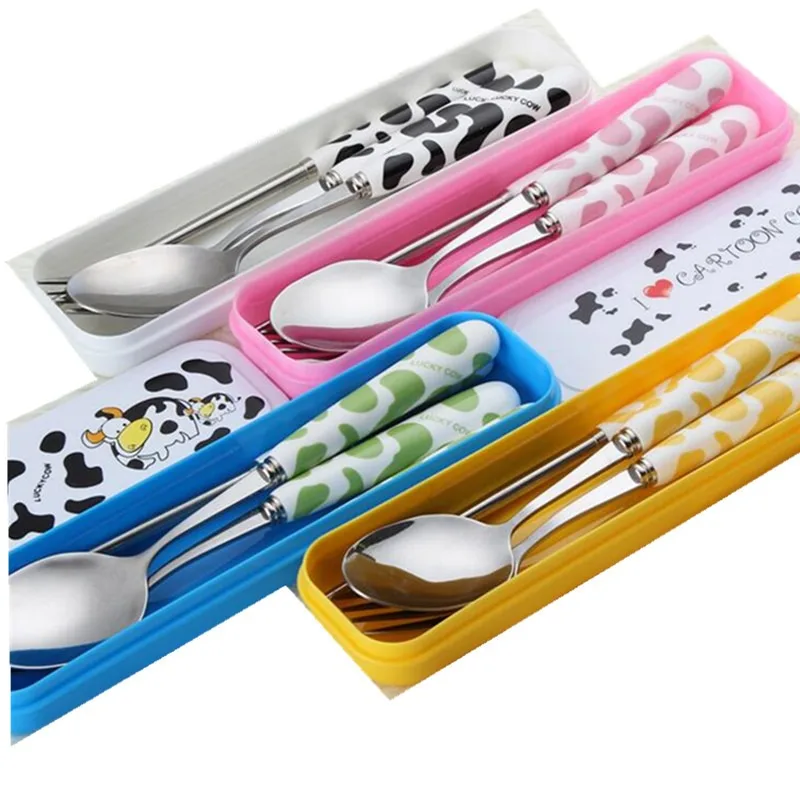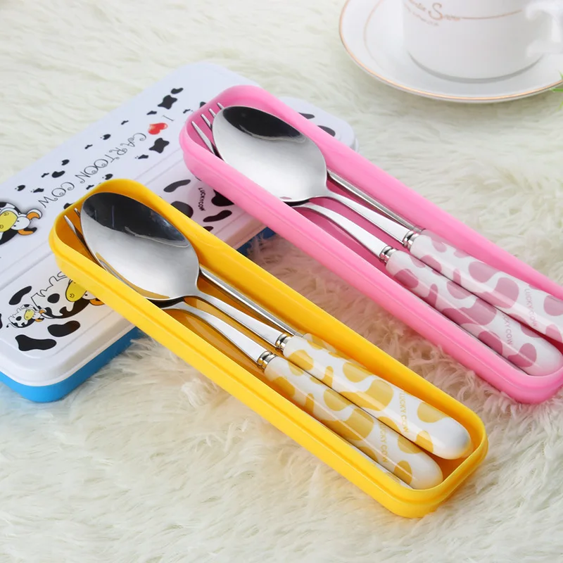 3 шт./компл. креативная керамическая ручка из нержавеющей стали и керамическая ложка с рисунком коровы вилка палочки для еды портативная детская посуда подарок