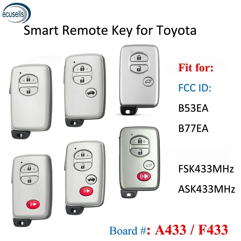 Автомобильный ключ подходит для Toyota Camary Land Cruiser Aurion Corolla Avensis A433 F433 Smart Remote Key FCCID:B77EA B53EA 433,92 МГц