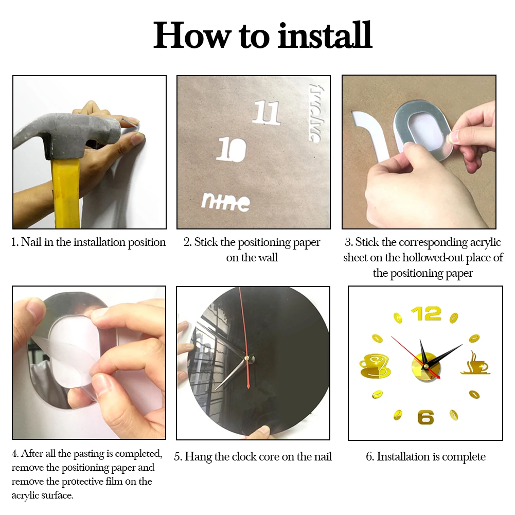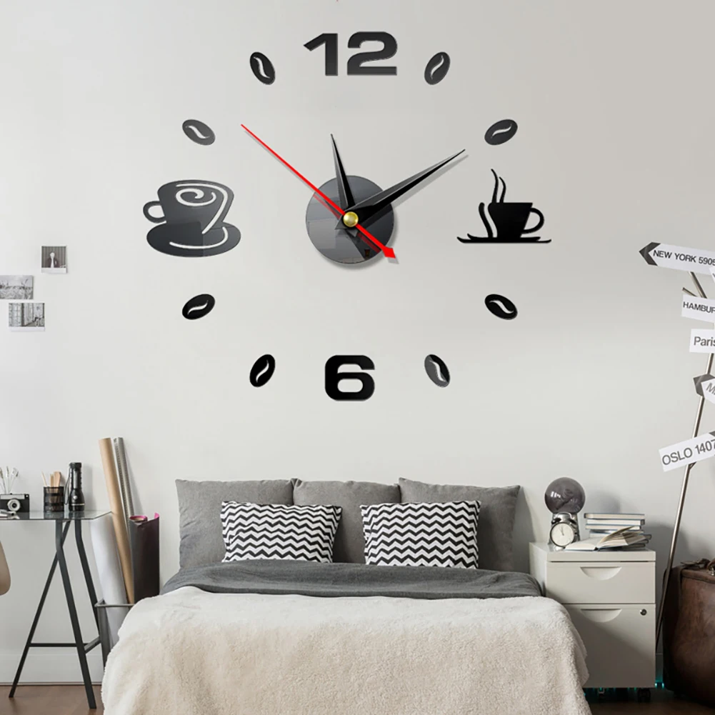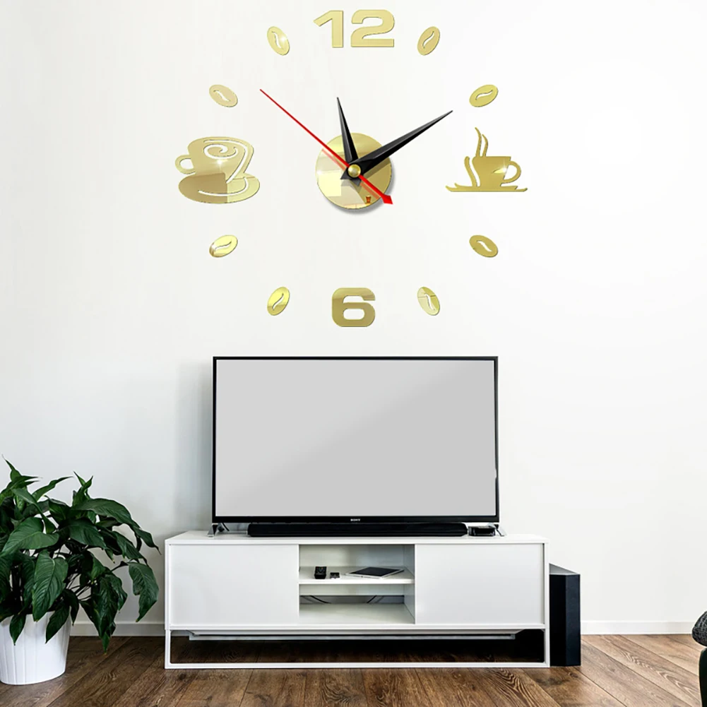 Большие настенные часы "сделай сам", бескаркасные гигантские настенные часы, современный дизайн, кружка для кафе, кофе, кофейные зерна, Настенный декор, кухонные настенные часы, Новинка