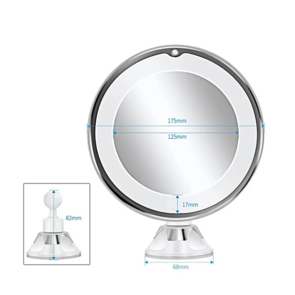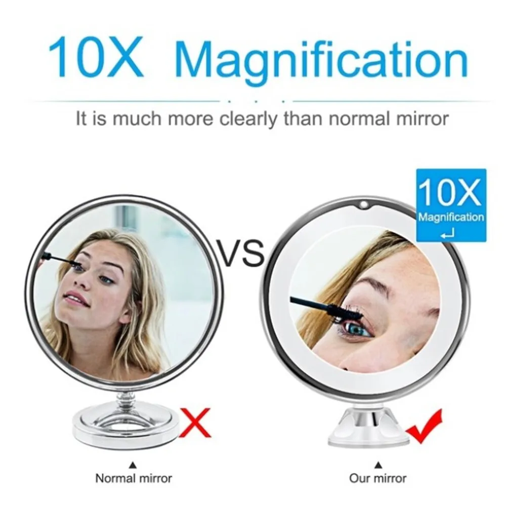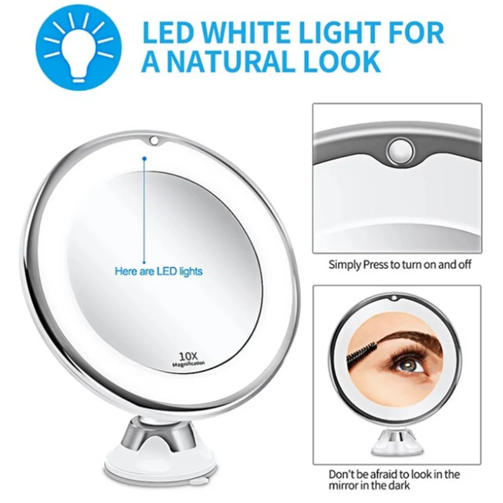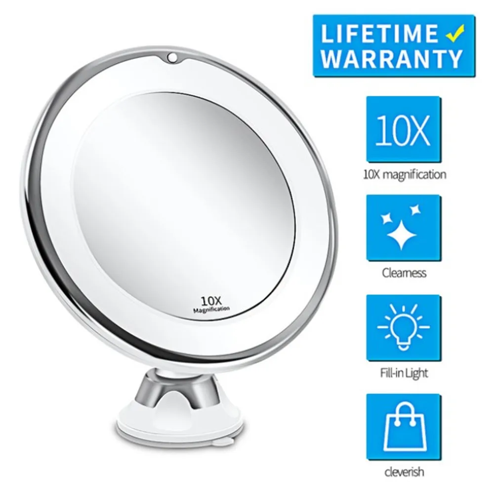 Зеркало для макияжа, гибкое, с 10-кратным увеличением, со светодиодной подсветкой