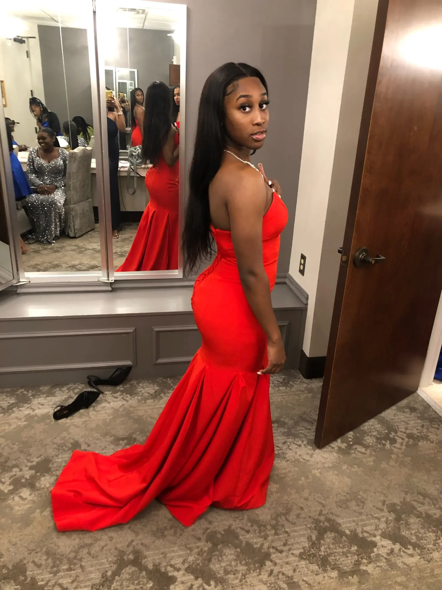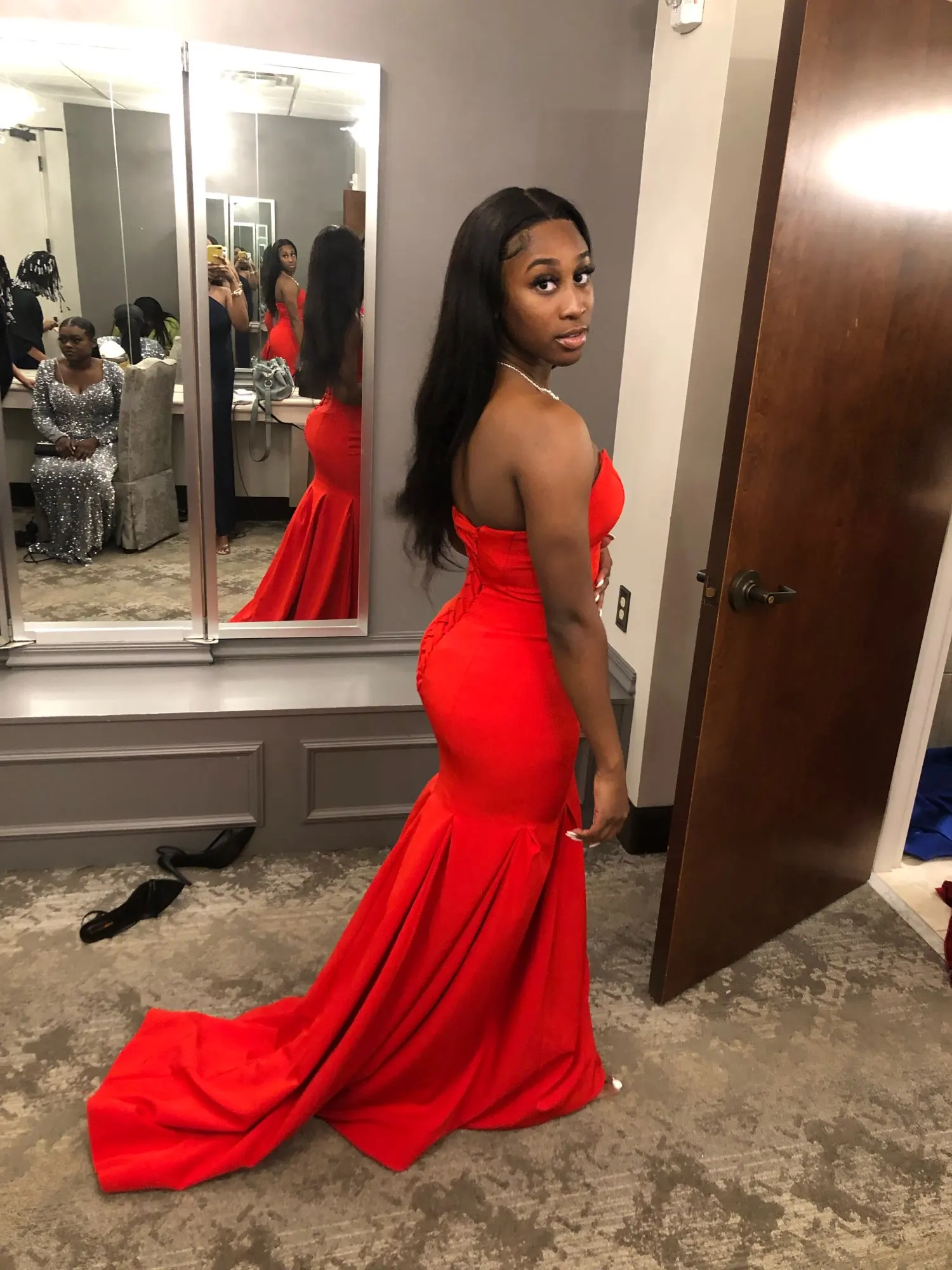 Женское вечернее платье-русалка, красное ТРАПЕЦИЕВИДНОЕ платье без рукавов для торжества, выпускного вечера, 2022