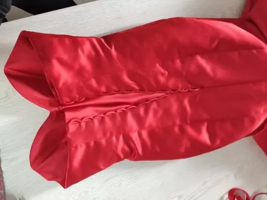 Платье выглядит так же, как на фото, ткань очень красивая и выглядит дорого, я очень доволен