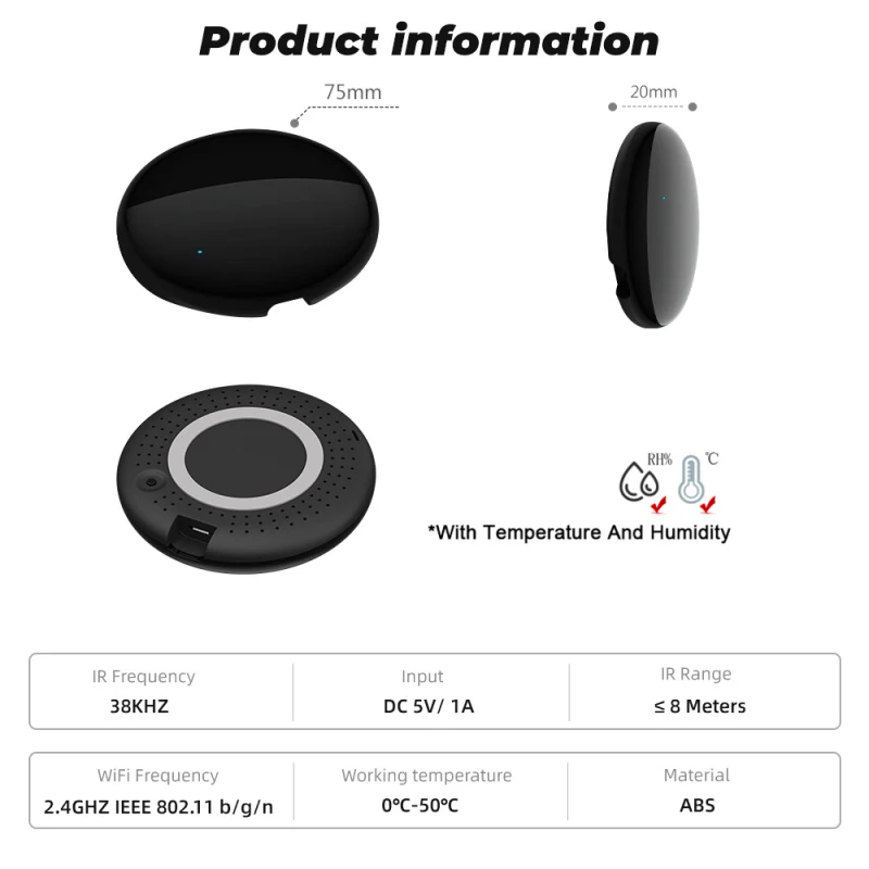 【APP пульт дистанционного управления 】 вы можете управлять инфракрасным устройством через бесплатный мобильный телефон "Smart Life/TUYA"