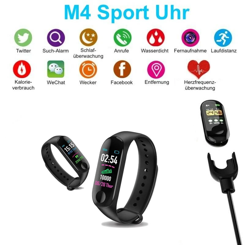 Смарт-часы M4 унисекс, с фитнес-трекером, Bluetooth, шагомером и Пульсометром