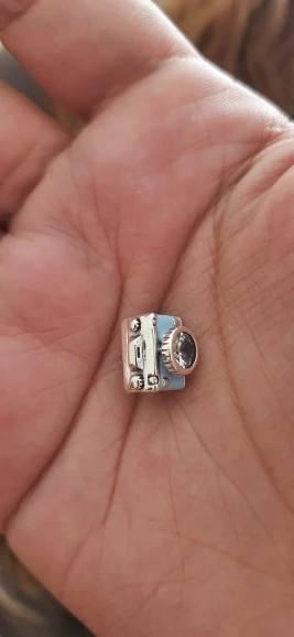 Great charm, looks great. This one has a screw on the inside, but the top is heavier than the bottom so it flips upside down so it will stay on your station but upside down.
