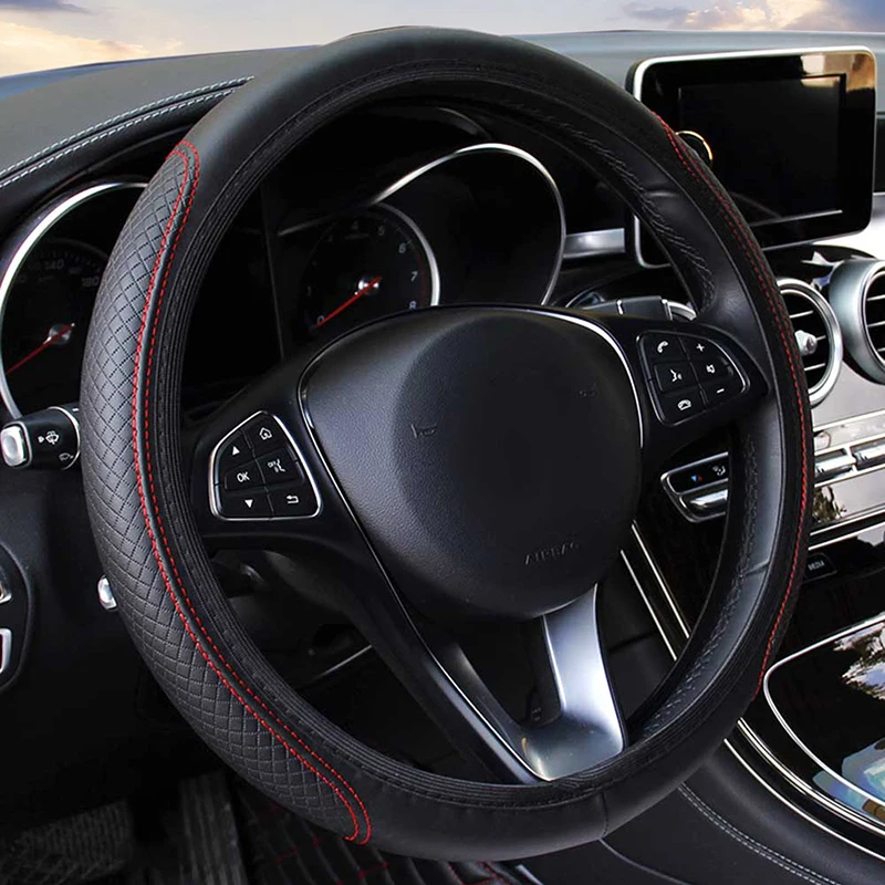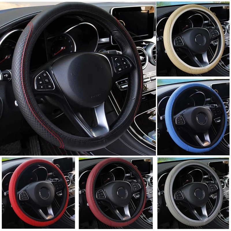 Противоскользящий чехол на руль автомобиля, универсальный кожаный ч...