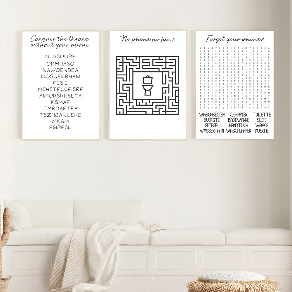 Черно-белые головоломки с надписями, настенный художественный холст, плакат и печать, забудьте о вашем телефоне, фотография детской комнаты для спальни