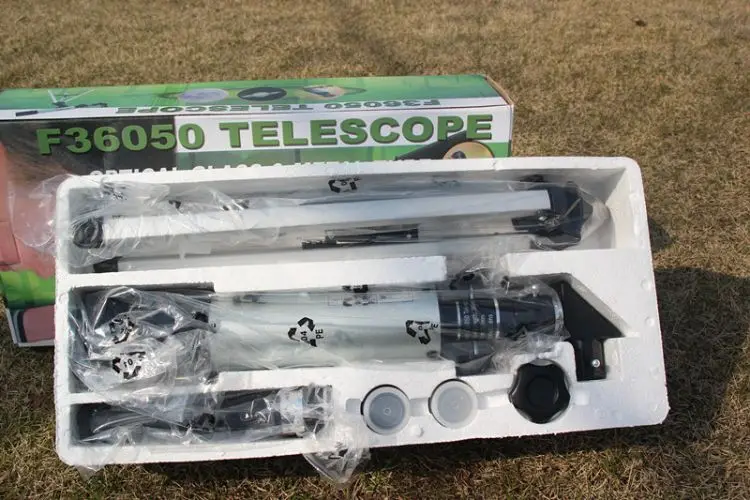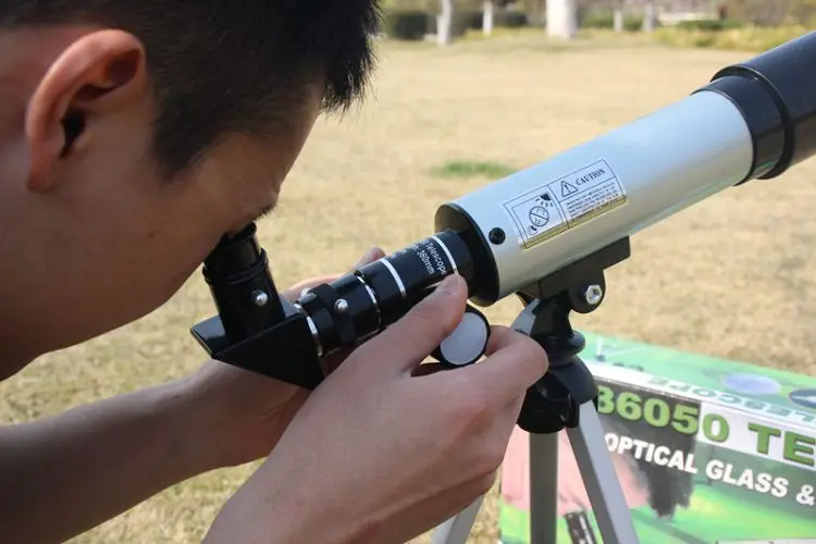 Рефракционный астрономический телескоп с диафрагмой 50 мм и фокусным расстоянием 360 мм, максимальная мощность 90x.