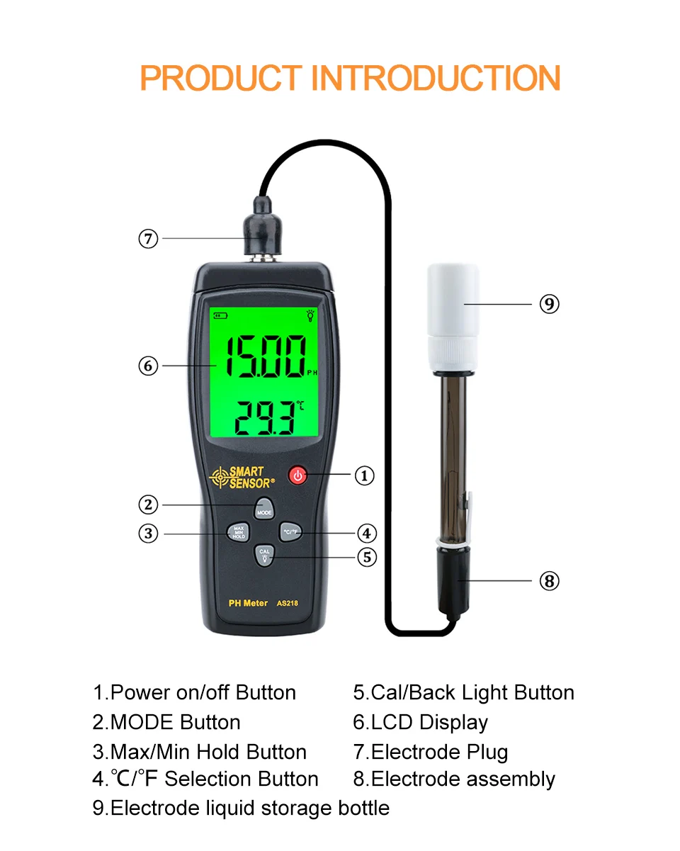Цифровой рН-метр, кислотный измеритель PH для аквариума, для бассейна, тестер качества воды, измеритель ацидо, Подкислитель AS218Ph-метр является электронным устройством, используемым для измерения pH, который является либо концентрацией ионов водорода в водном растворе, либо активностью ионов водорода в водном растворе. РН будет указывать, является ли раствор кислотным или основным, но не является измерением кислотности или щелочности. Ph-метры работают в жидкостях, хотя специальные зонды иногда используются для измерения pH полутвердых веществ. Ph-метр состоит из специального измерительного зонда (стеклянного электрода), подключенного к корпусу, который измеряет и отображает показания pH.