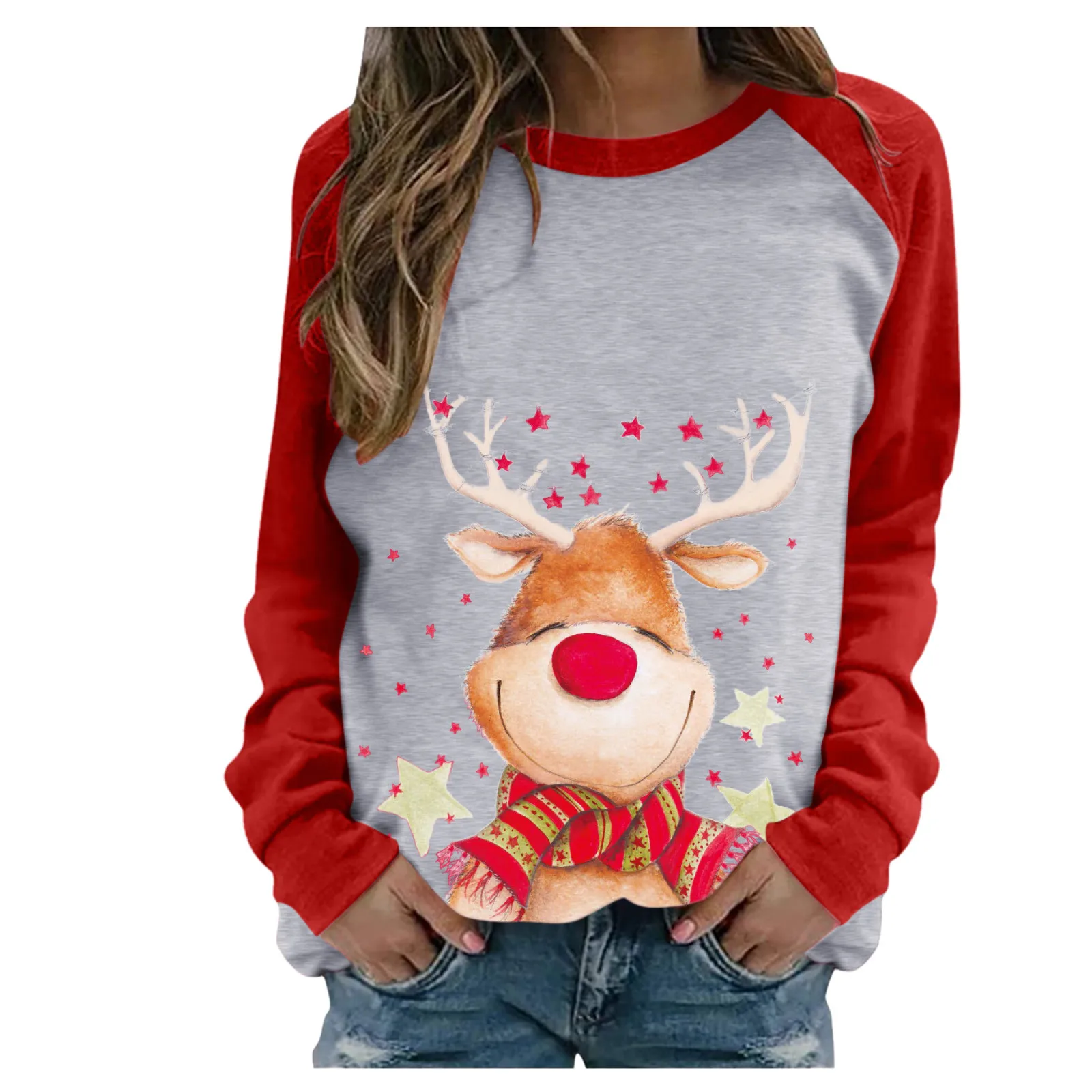 Женские повседневные футболки блузки реглан с длинными рукавами и рождественским принтом
