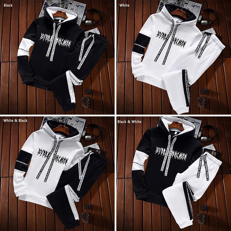 Костюм спортивный мужской повседневный из 2 предметов, толстовка с капюшоном и штаны, комплект спортивной одежды для бега, тренажерного зала