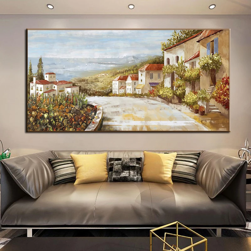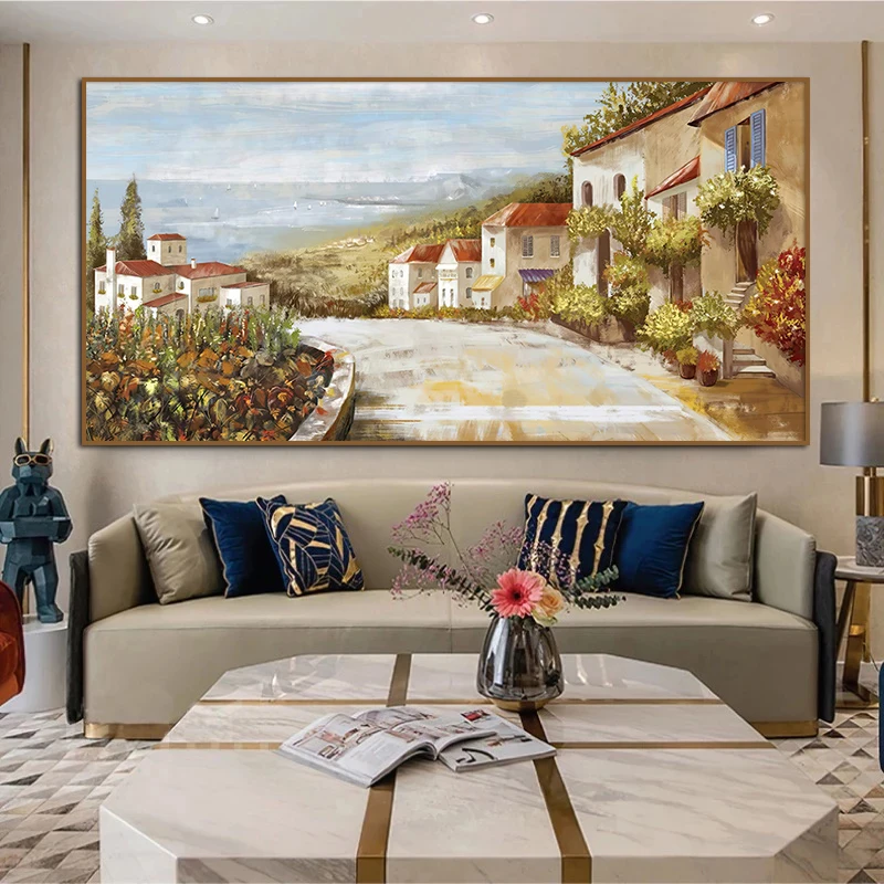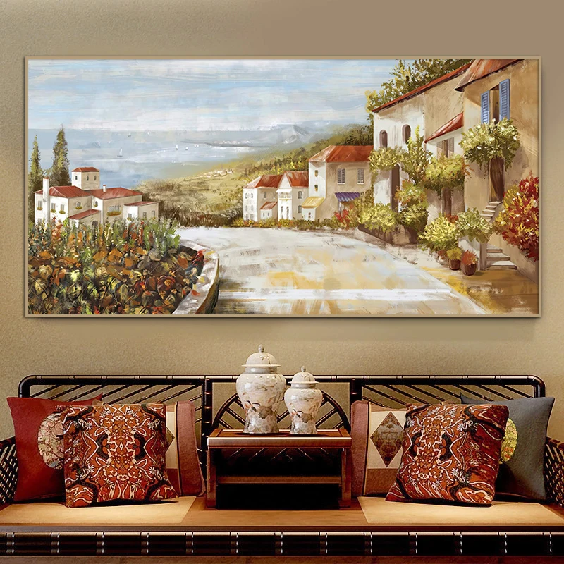 Пасторальные Тосканские улицы, холст, абстрактная картина маслом, винтажный настенный художественный плакат и принты, украшение для спальни, дома, картина
