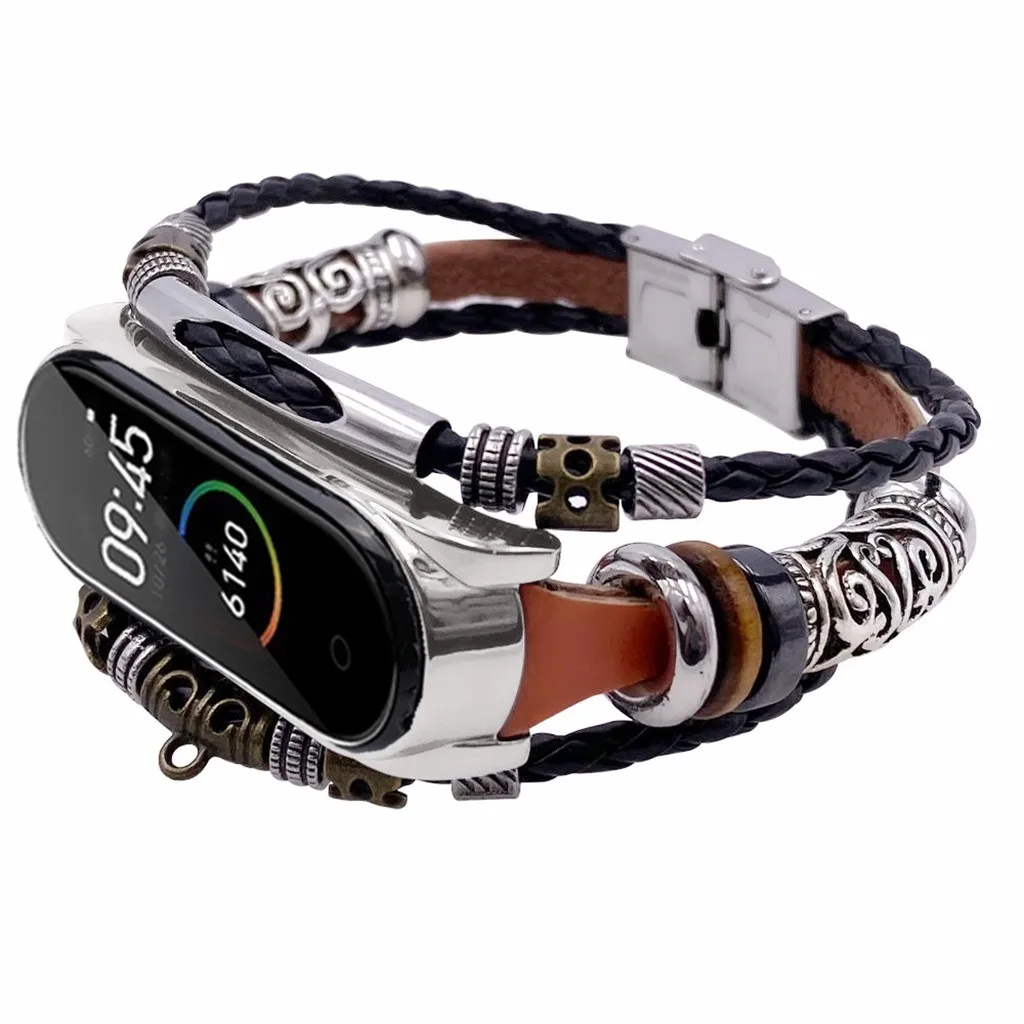 Браслет для Mi Band 45, ремешок из натуральной кожи в стиле ретро д...