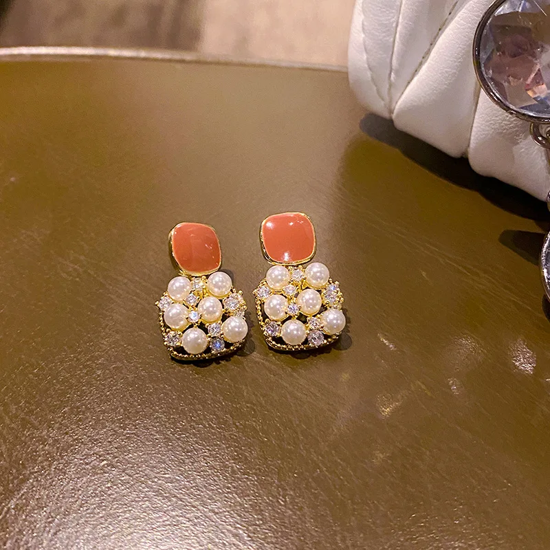 Геометрические Квадратные жемчужные циркониевые Висячие серьги для женщин корейские модные украшения женские роскошные серьги для вечеринок