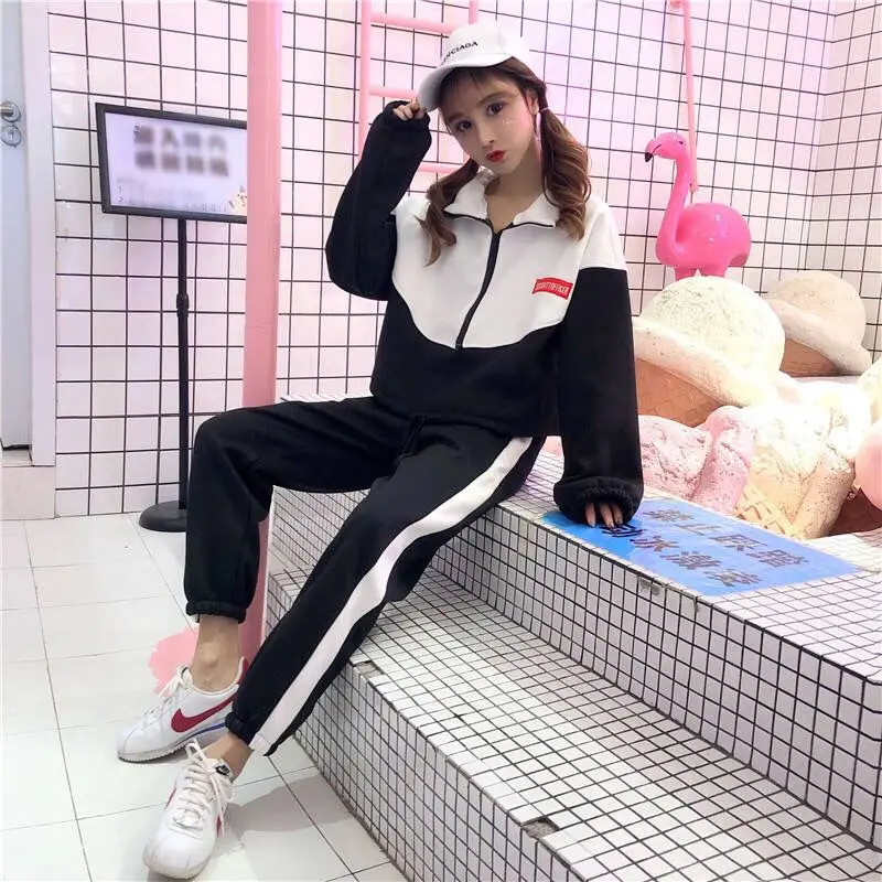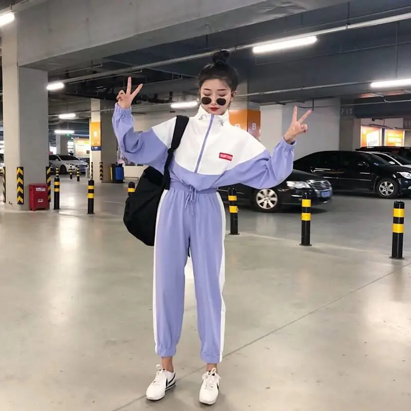 Костюм-двойка с длинными рукавами, в стиле преппи, Свободный Повседневный Спортивный костюм в Корейском стиле, для студентов, весна 2021