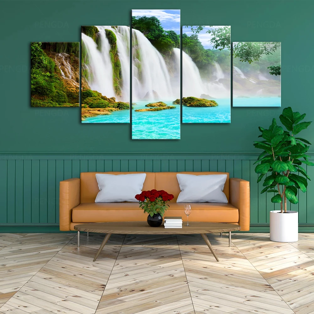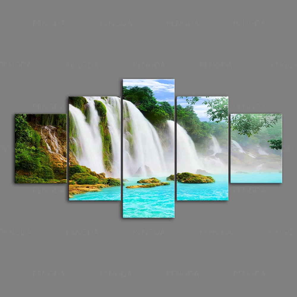 Модульная 5-панельная картина водопад на холсте, принты, изображения страны чудес, настенный художественный плакат, Современный домашний декор, рамка для гостиной
