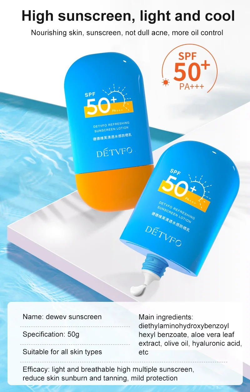 Высокомощный Солнцезащитный спрей DETVDFO SPF50 +, изоляция, УФ, антивозрастной, освежающий, масляный, отбеливающий, солнцезащитный крем для лица