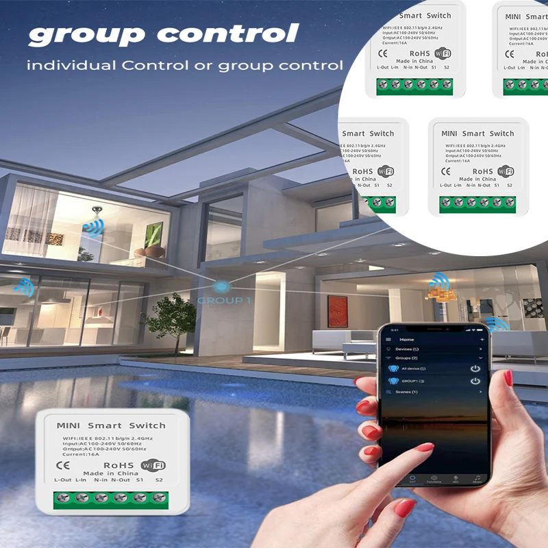 Переключатель Mini Tuya Wi-Fi с поддержкой А, двухсторонний Модуль Автоматизации для умного дома, работает с приложением Alexa Google Home Smart Life