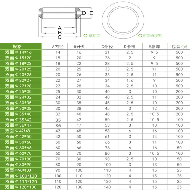 Размер: например, 14x16 мм = AxB = внутренний диаметр x отверстие (см. Рисунок ниже)