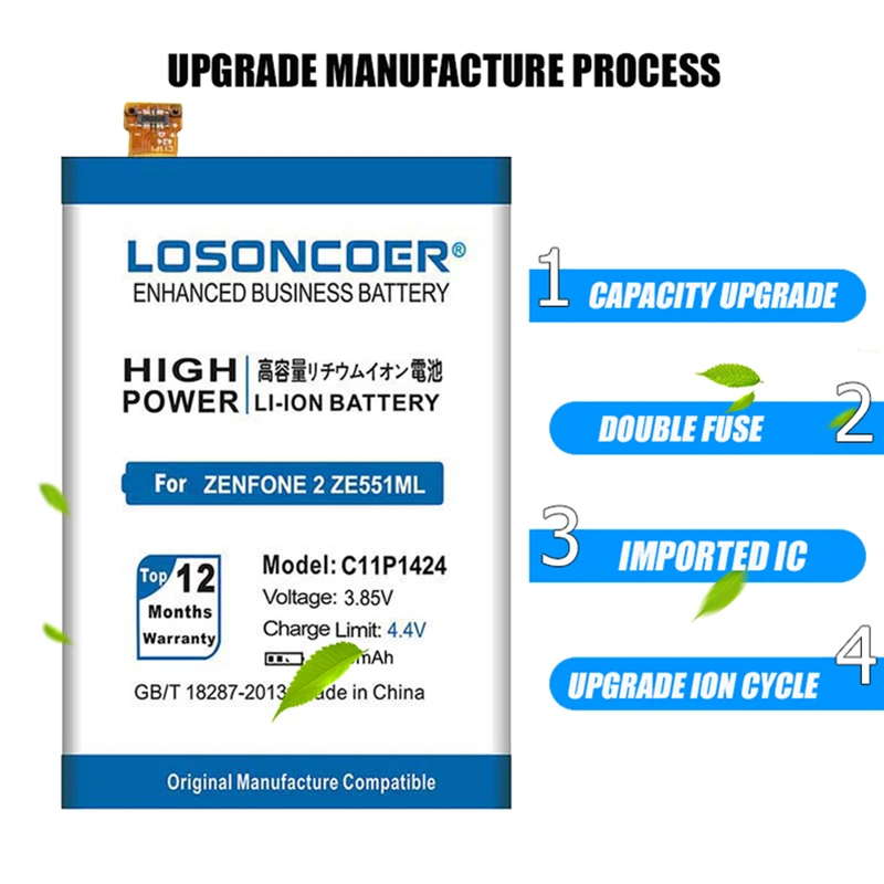 Профессиональная проверка всех батарей LOSONCOER прошла строгую проверку качества перед отправкой: 100% новый и O-цикл, без эффекта памяти, 72 часа испытания на старение, Статика при высокой температуре, И активирует внутренний химический элемент ячейки, обеспечивает стабильность зарядки и разрядки. Поэтому вам не нужно сразу активировать, зарядить или использовать.
