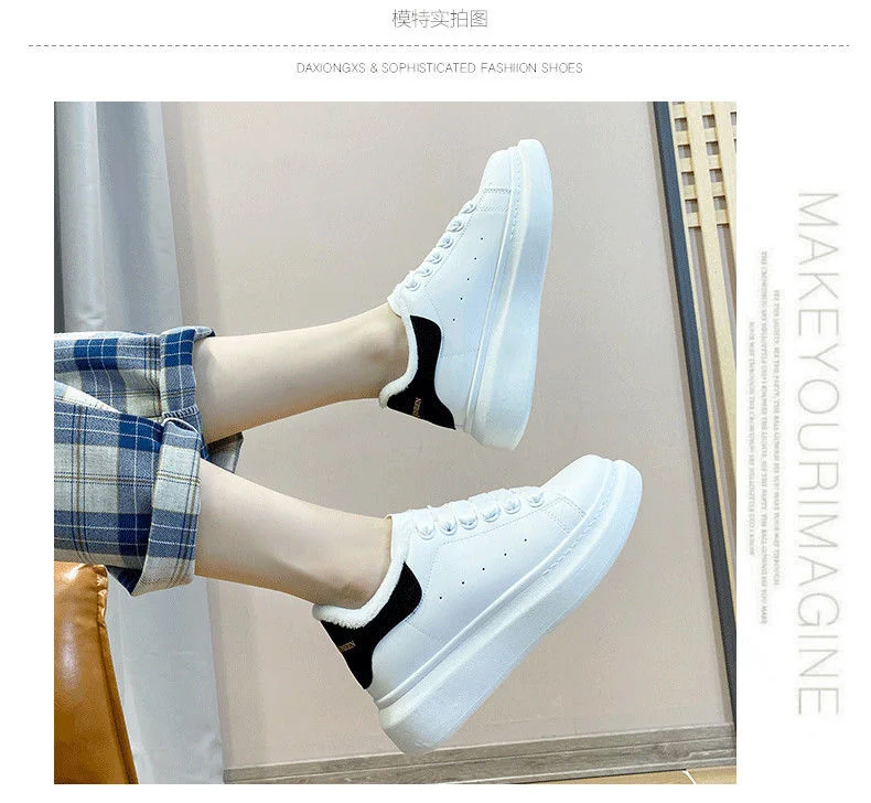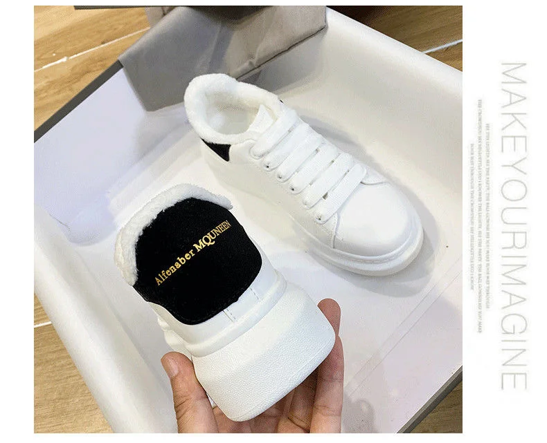 Женская обувь на толстой подошве, плюшевые удобные кроссовки белого...