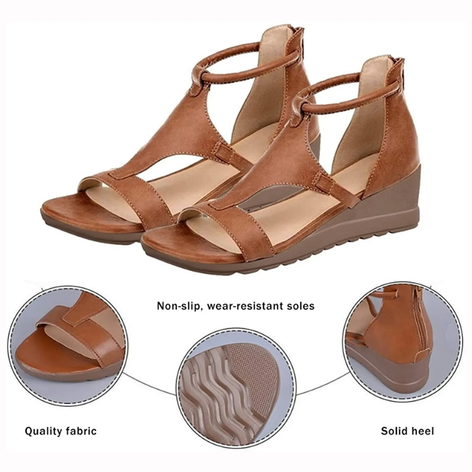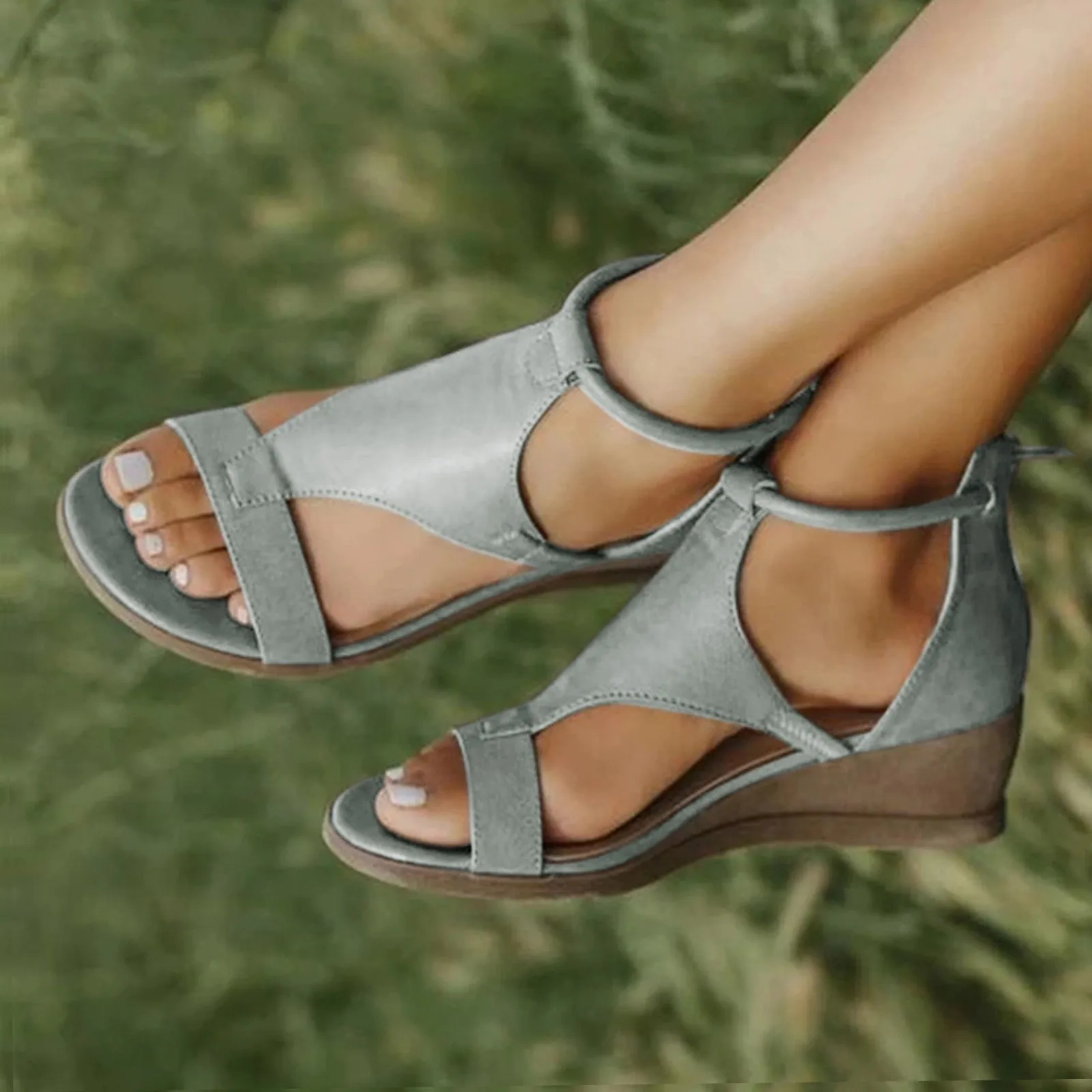 Босоножки женские летние на танкетке, повседневная обувь на платформе с открытым носком, однотонные сандалии на молнии