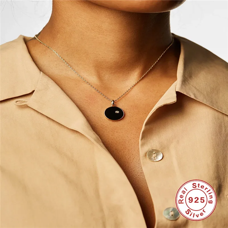 Ожерелье BOAKO для женщин, цепочка до ключицы, ювелирные изделия черного и белого цветов, масляное ожерелье, Круглый Кулон, цепочка в готическом стиле