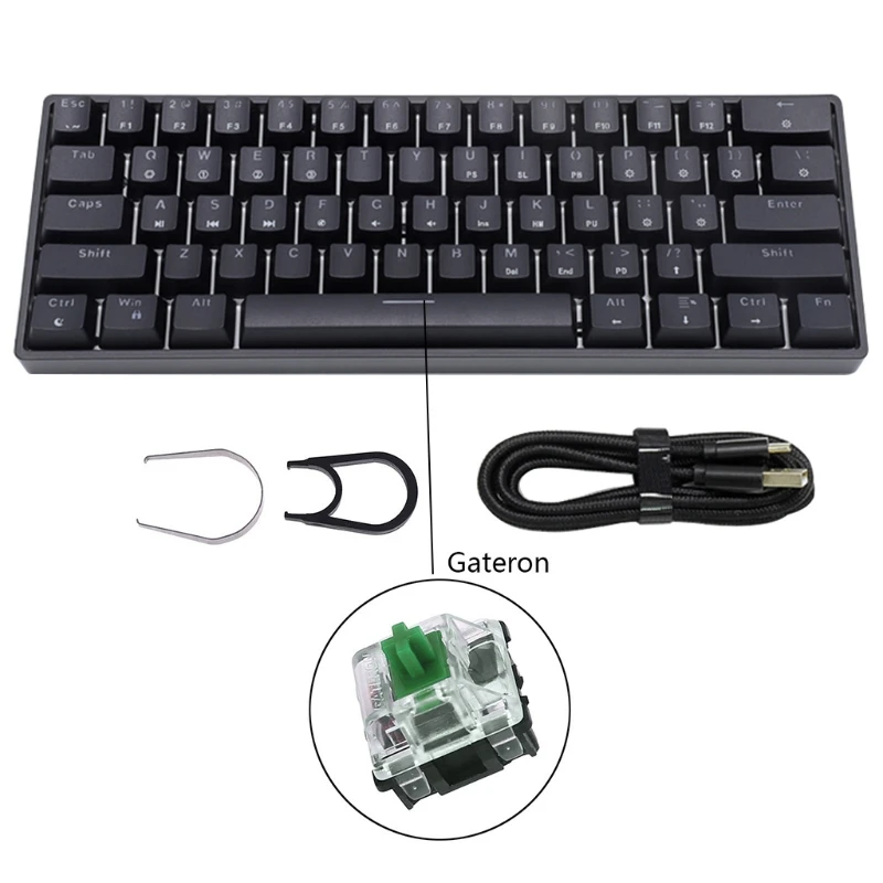 Портативная механическая клавиатура GK61 SK61 60%, Gateron, оптичес...
