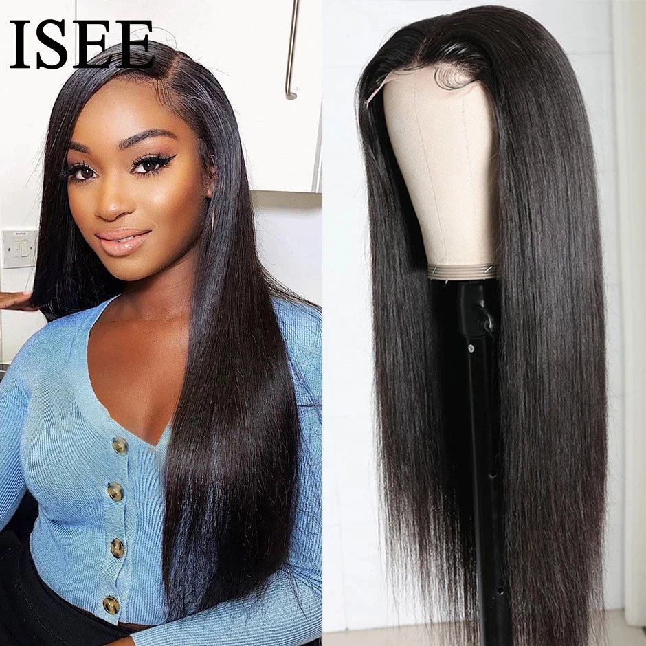 ISEE волосы длинные прямые кружевные передние человеческие волосы Wigs180 % плотность малазийский прямой парик для женщин 4X4 Кружева Закрытие парики