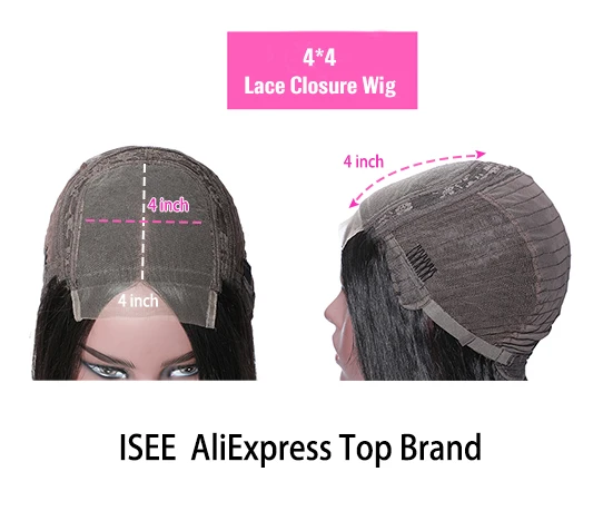Парик ISEE из натуральных бразильских волос, плотность 180%, 4X4