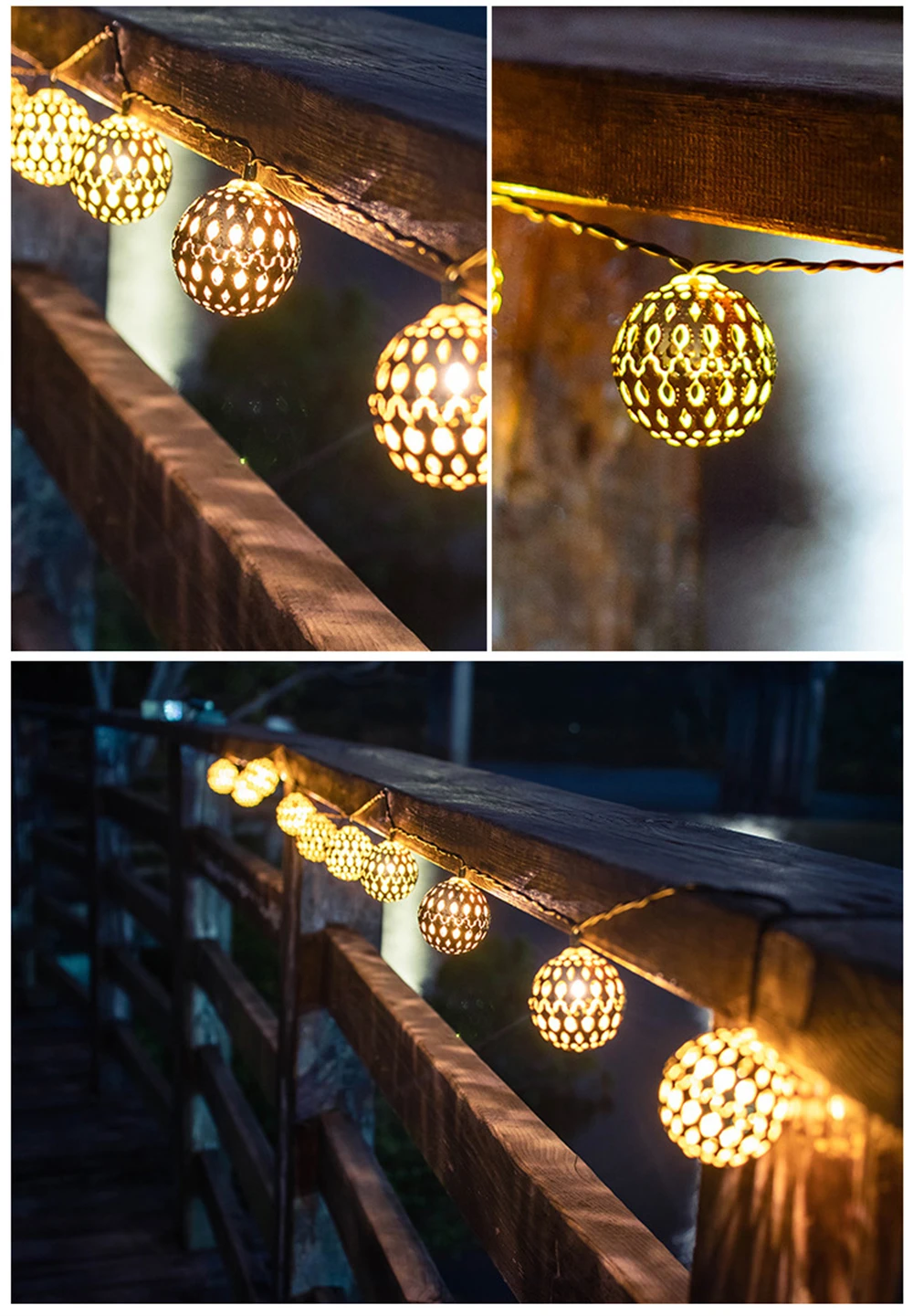 I received the goods 6 days after placing the order. The packaging is very strong. After I opened it, I checked every detail. Every ball is made of metal, which makes him look more worthwhile. I bought solar energy. Light, so I don't need to change the battery, I will decorate it on my balcony, and I will show you its effect in the evening