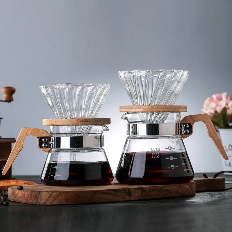 Стеклянная кофеварка с деревянной ручкой, ручная капельная Кофеварк...