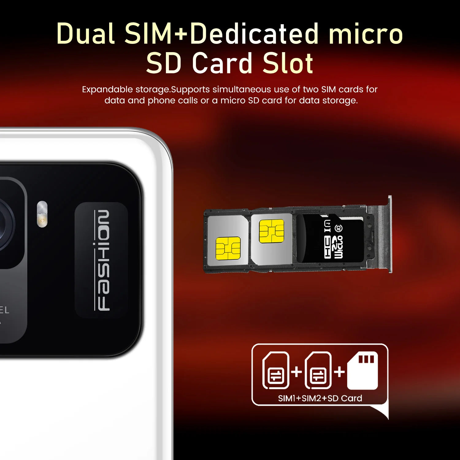 3. Режим ожидания: две sim-карты с двойным режимом ожидания (слот поддерживает SIM-карту, другой слот поддерживает SIM-карту или TF-карту)