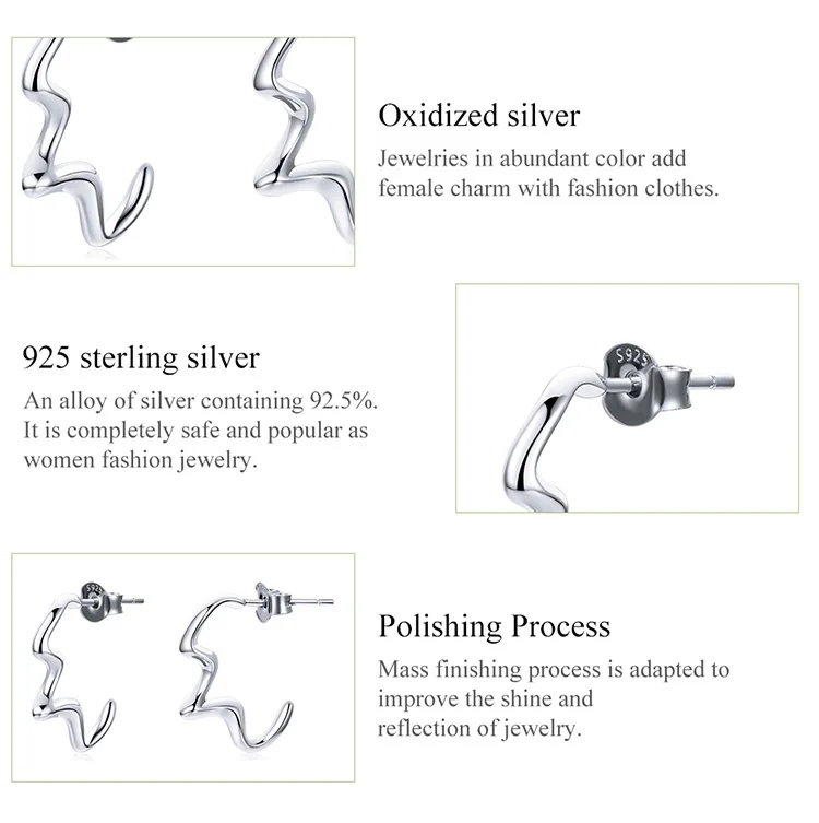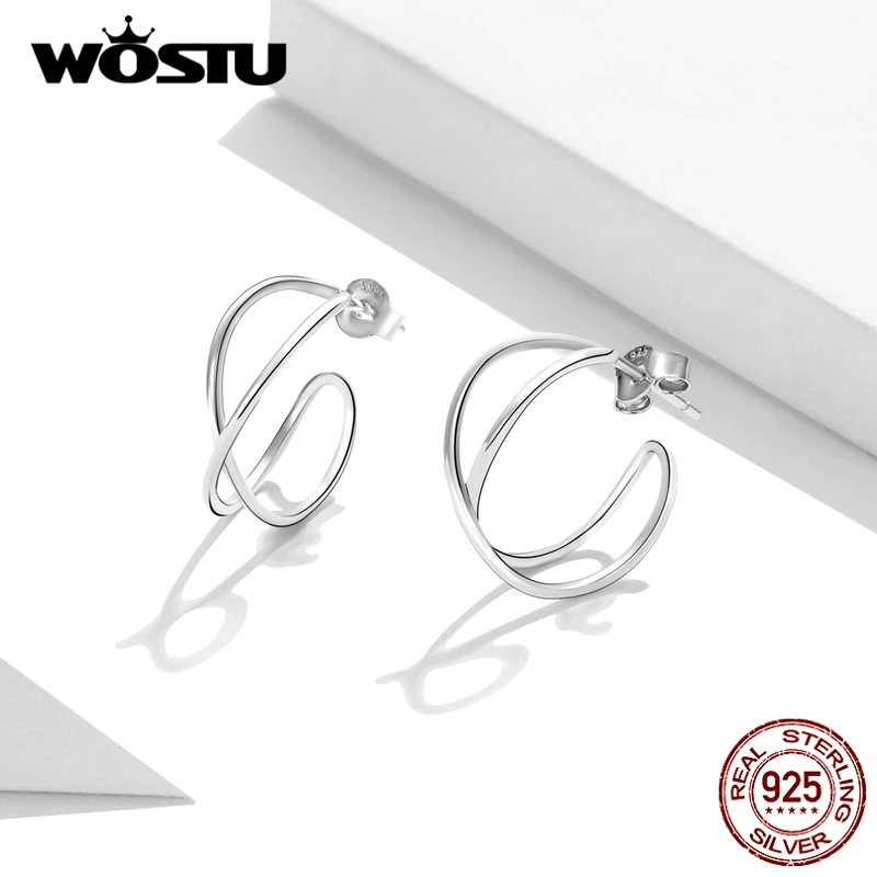 WOSTU Новое поступление 925 стерлингового серебра замысловатые линии серьги гвоздики волны пряжки для ушей серьги для женщин ювелирные изделия из серебра