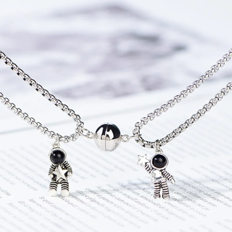 Магнитное ожерелье для пары, креативное ожерелье с кулоном астронав...