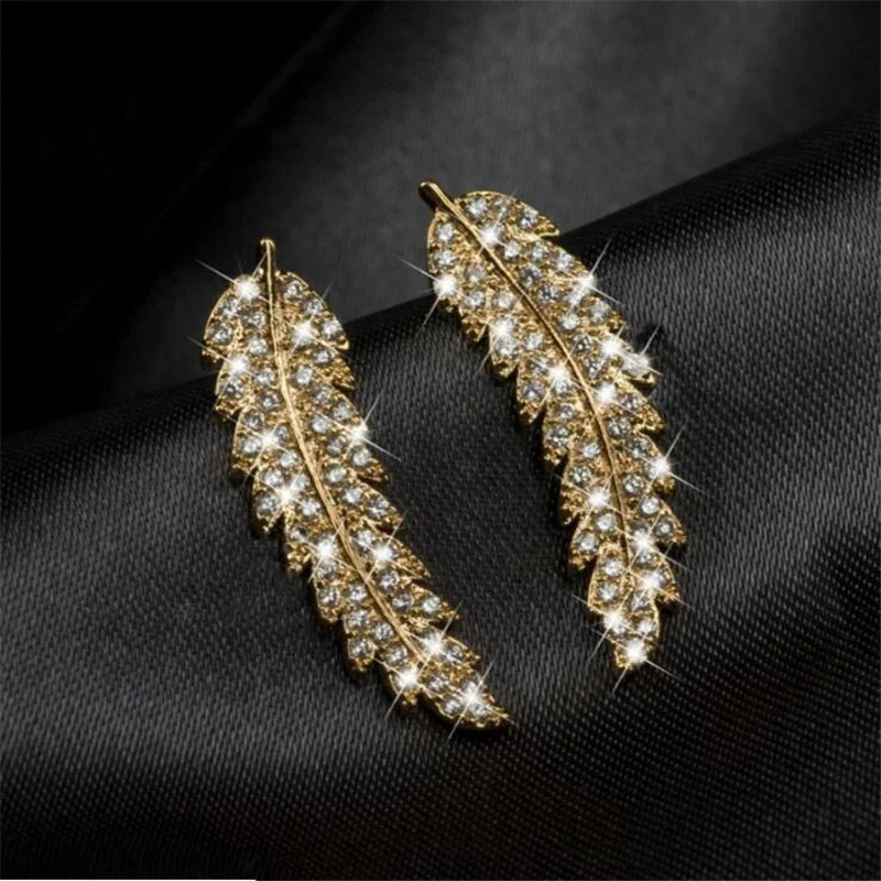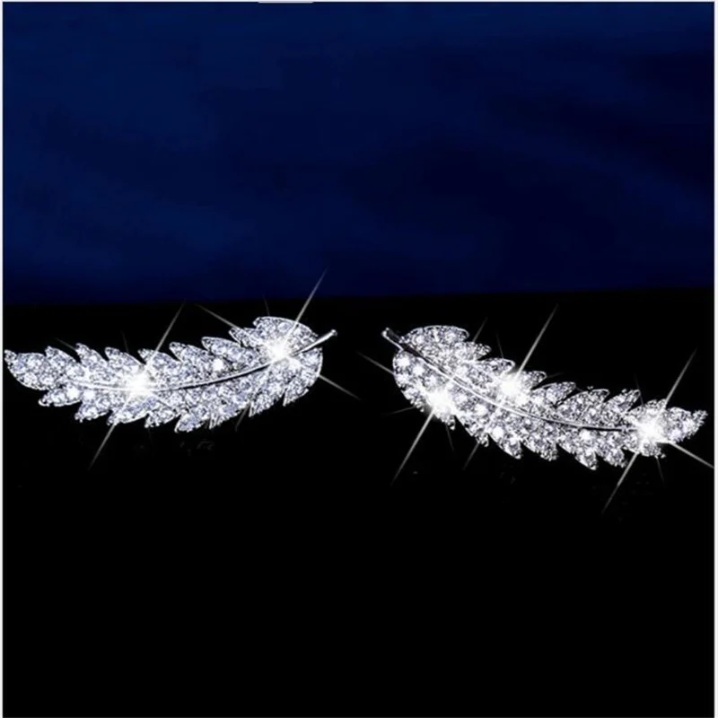 Модные серьги-гвоздики для женщин Нежный Стразы Перо лист серьги с...