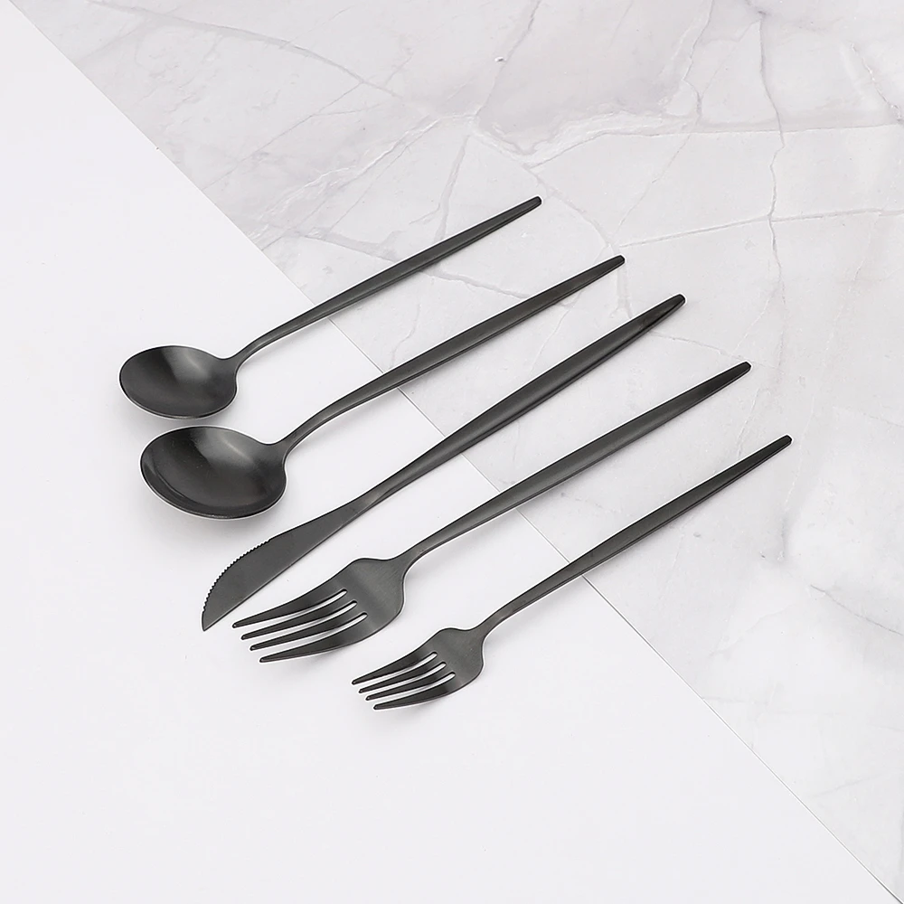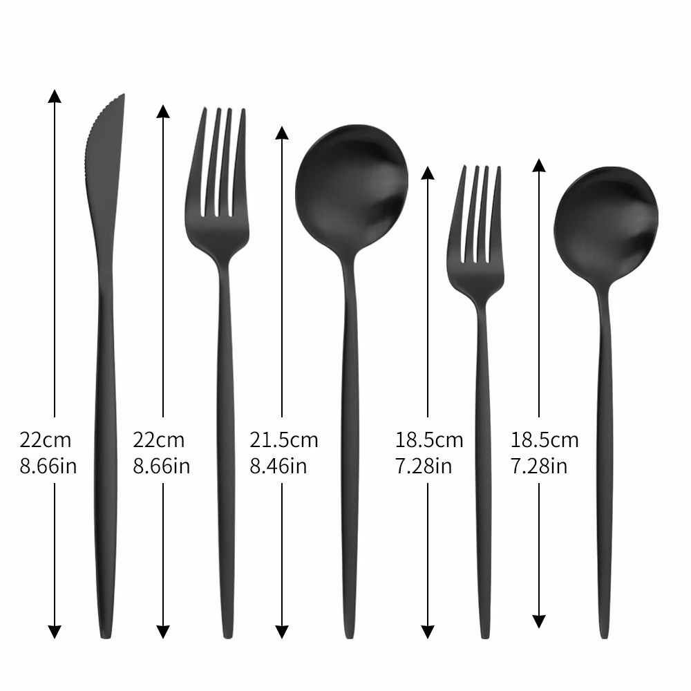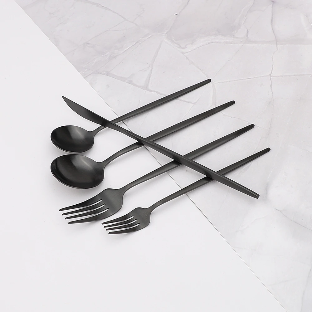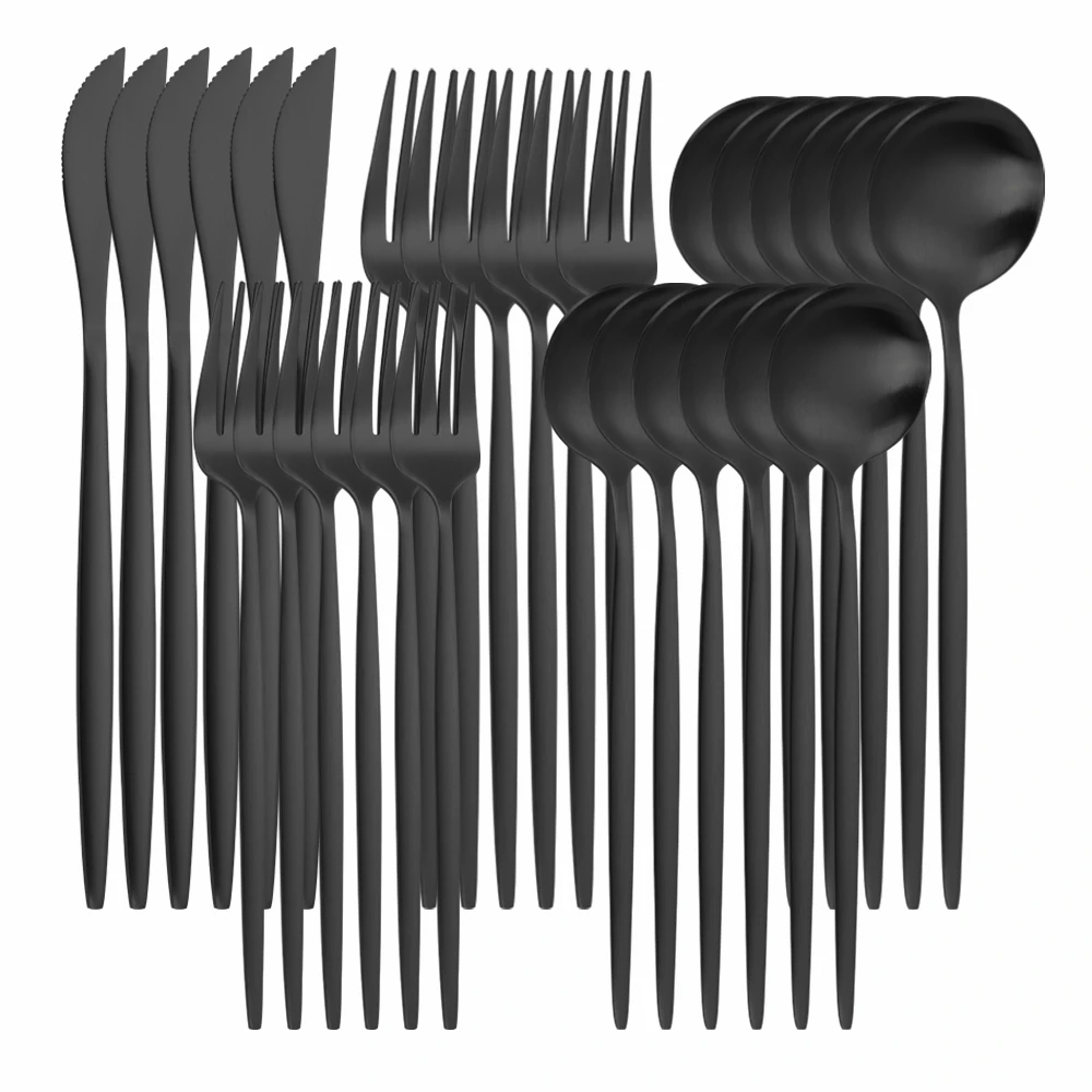 Матовые черные столовые приборы из нержавеющей стали, 24 шт.