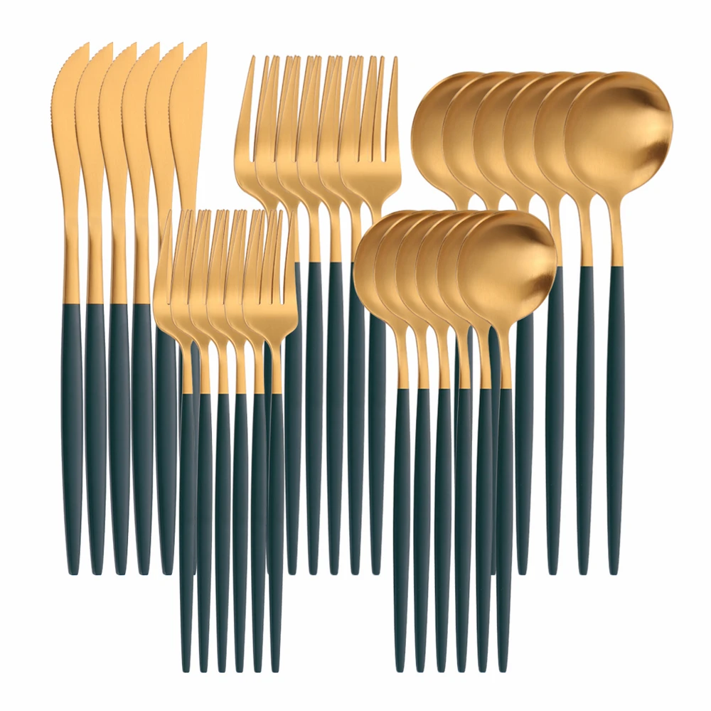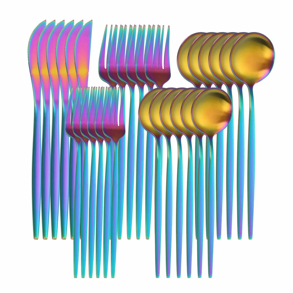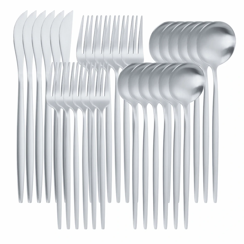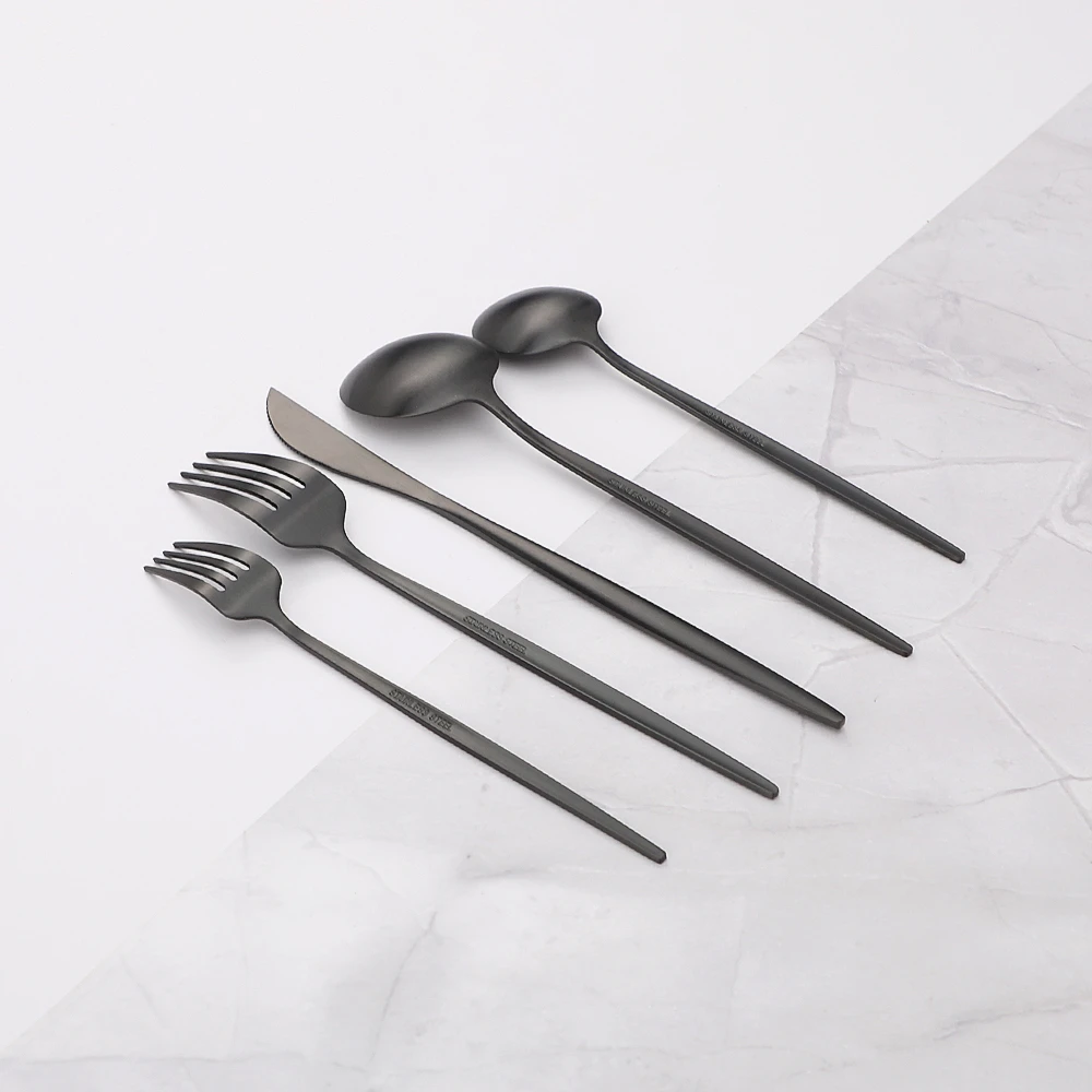 Матовые черные столовые приборы из нержавеющей стали, 24 шт.