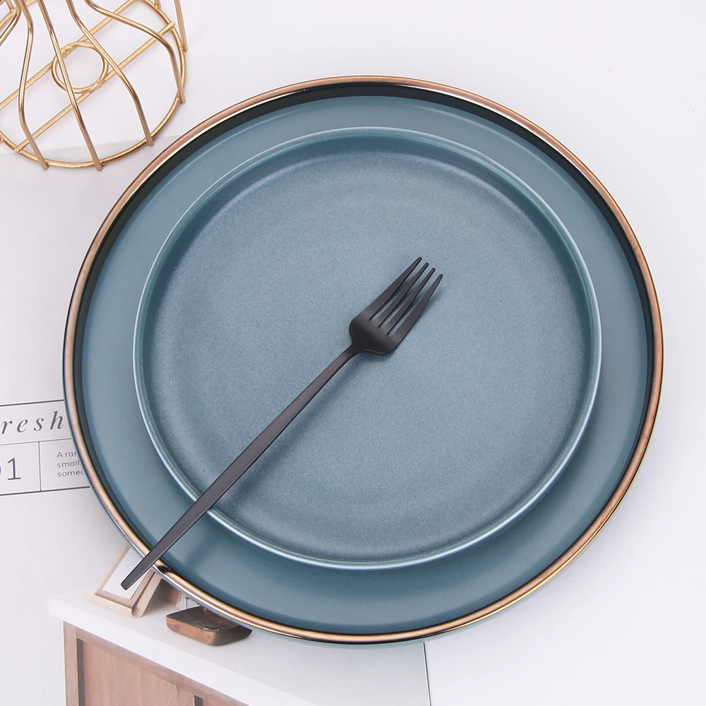 Набор столовых приборов, приборы из нержавеющей стали черного цвета...