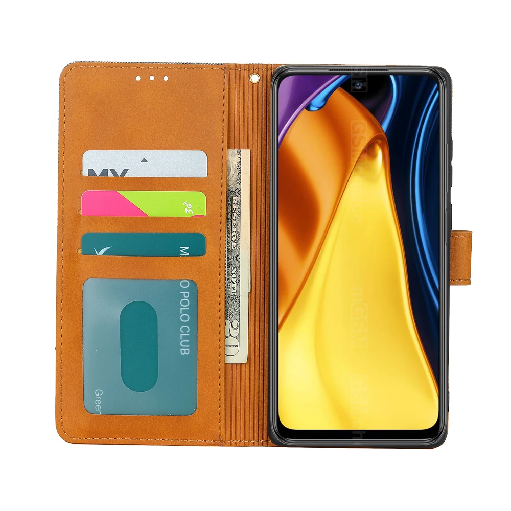 Новинка, кожаный чехол из ткани и зернистой кожи для Poco M3 Pro, чехол-кошелек, подставка для телефона, чехол для Xiaomi Poco M3 Pro, флип-чехол с магнитной картой Etui