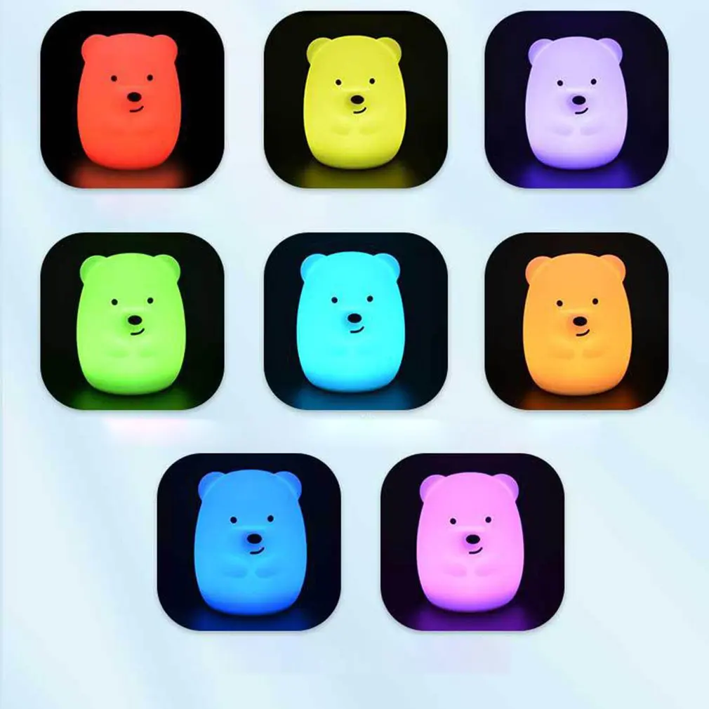 Миниатюрная лампа в виде медведя, светодиодный ночник RGB с дистанционным управлением и зарядкой от USB, цветной мультяшный ночной Светильник для детей, новогодний подарок для малышей