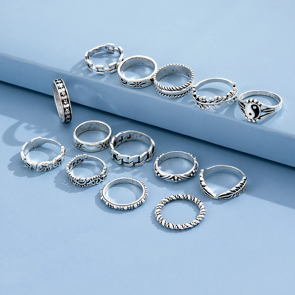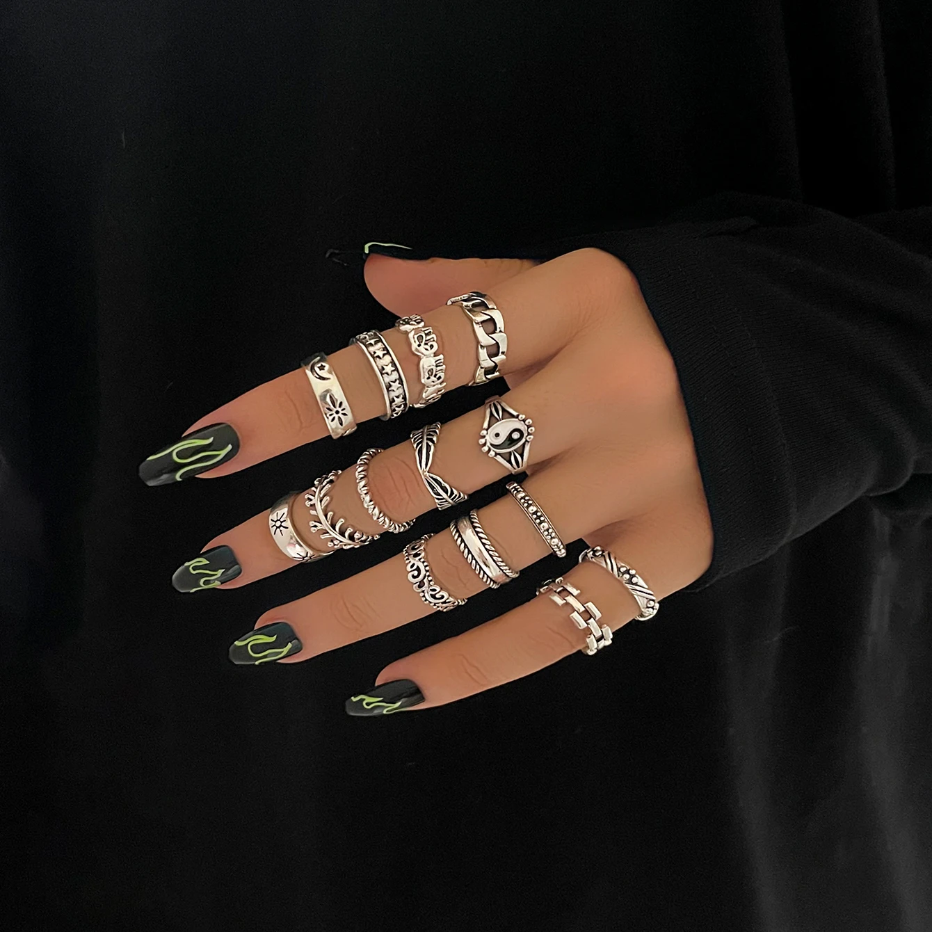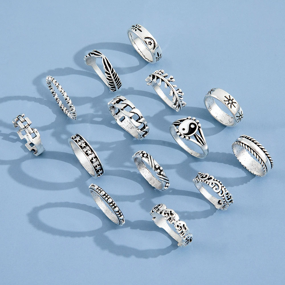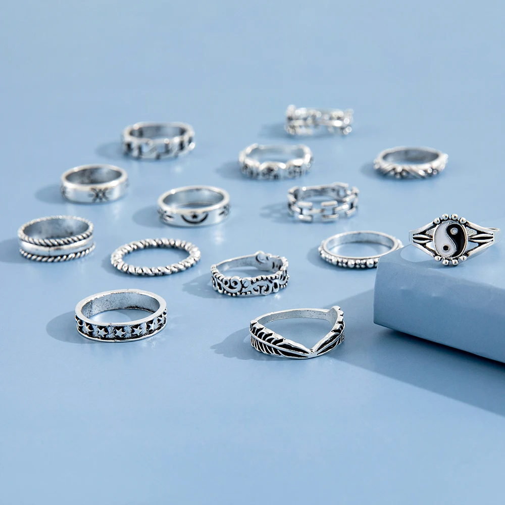 Винтажный комплект колец Aprilwell для женщин, 14 шт., Тай-Чи, панк, звезда, эстетика, геометрические, готические, эмо, стильные ювелирные изделия, 2021